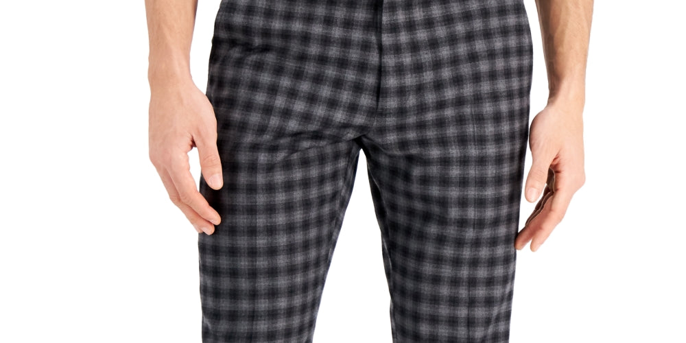 A frente lisa e o corte slim complementam o estilo moderno destas calças de terno de lã xadrez de búfalo da A|X Armani Exchange