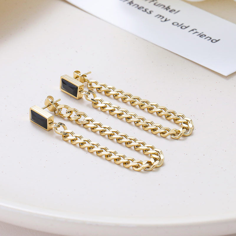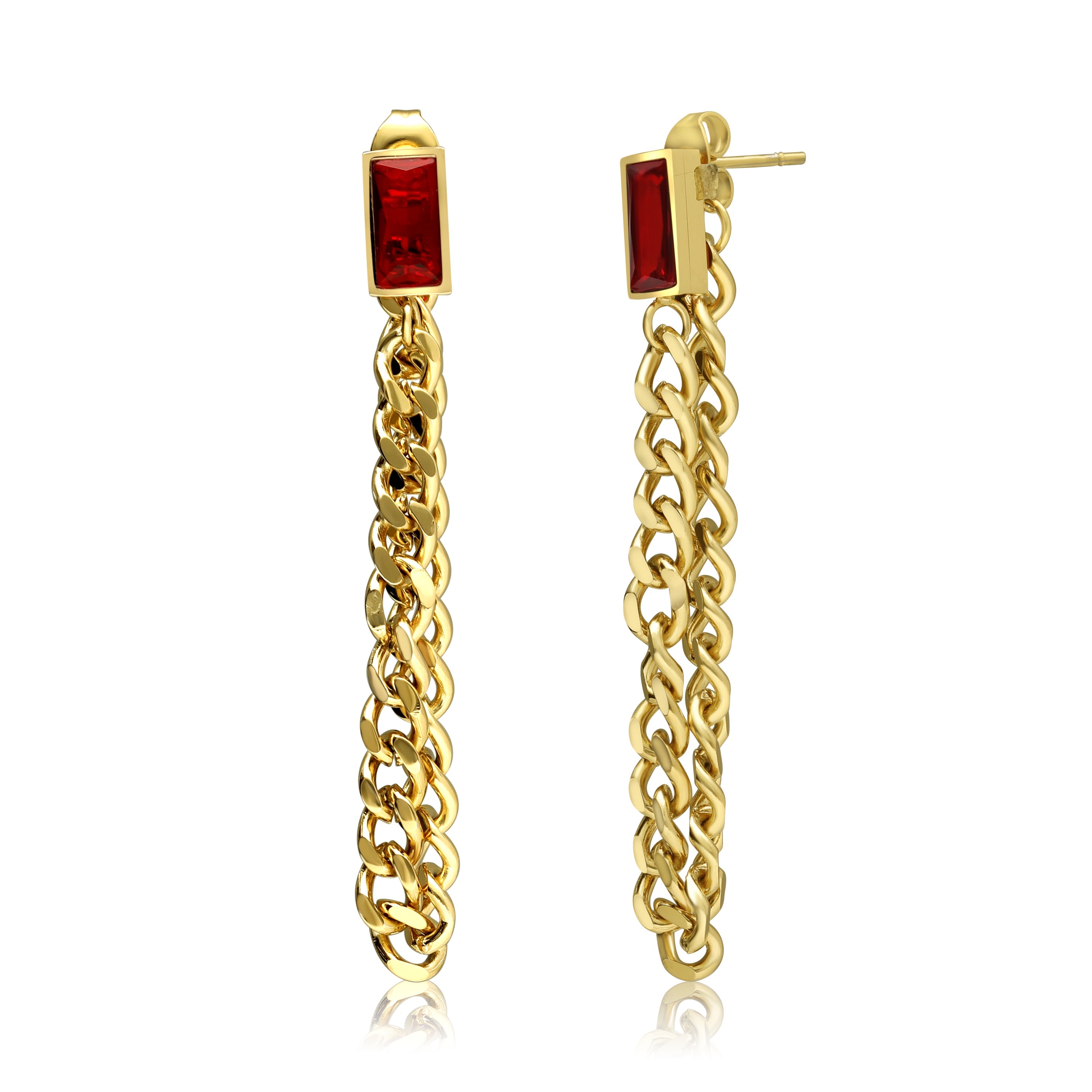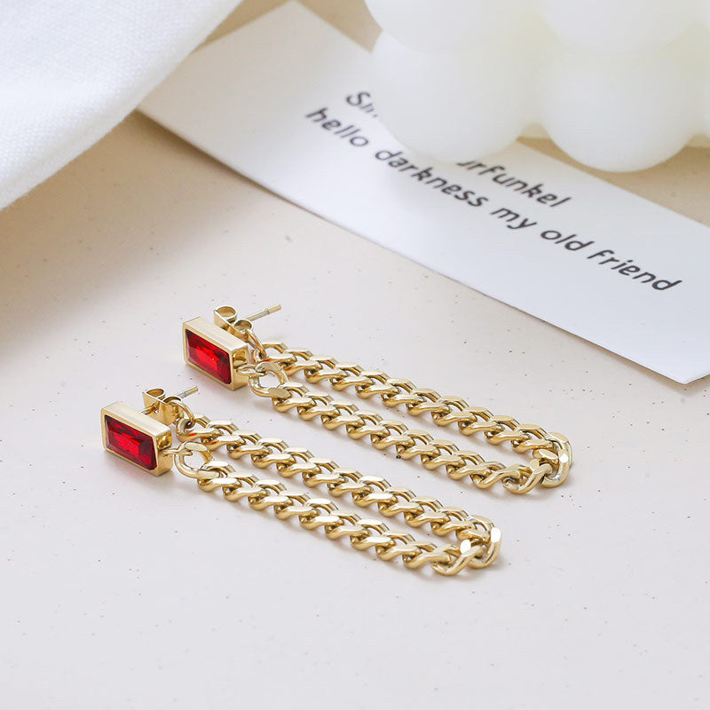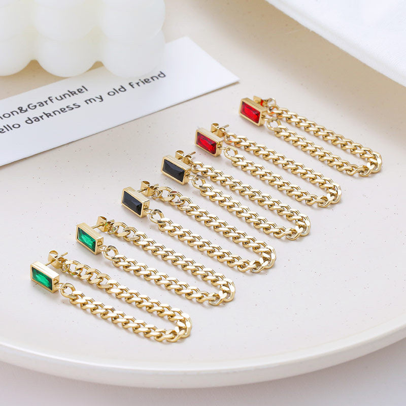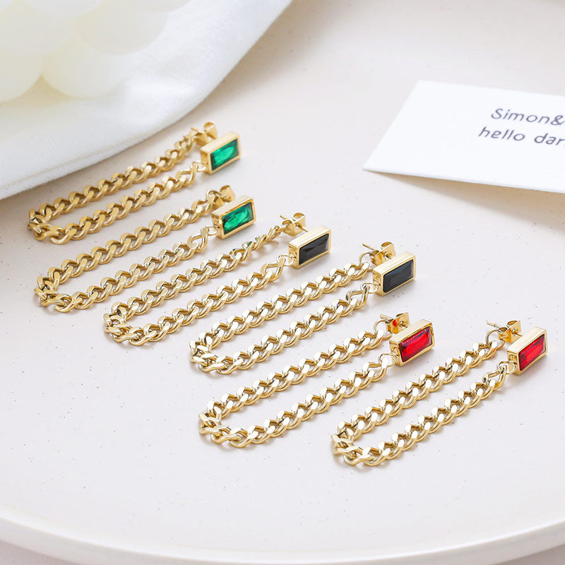 Make a statement with the Dangle Chain Earrings with Cubic Zirconia Emerald.