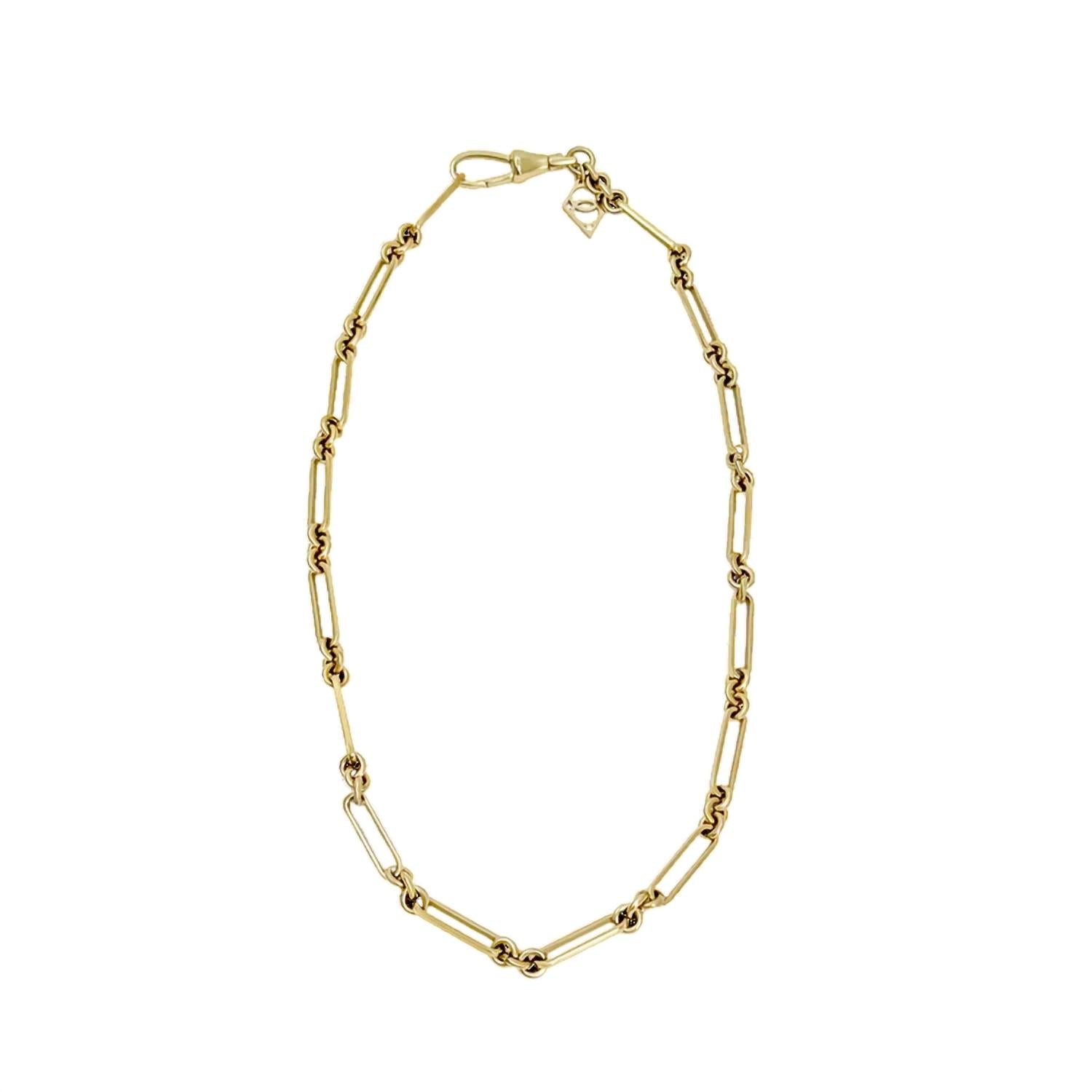Experience versatile elegance with the Paperclip Chain Necklace by Dorne, crafted in 14K yellow gold PVD-coated stainless steel. This 18-inch necklace is waterproof, tarnish-proof, and hypo-allergenic, ensuring durability and comfort. Featuring a unique triggerless clasp, it effortlessly transforms from a necklace to a bracelet and can be styled in various ways.