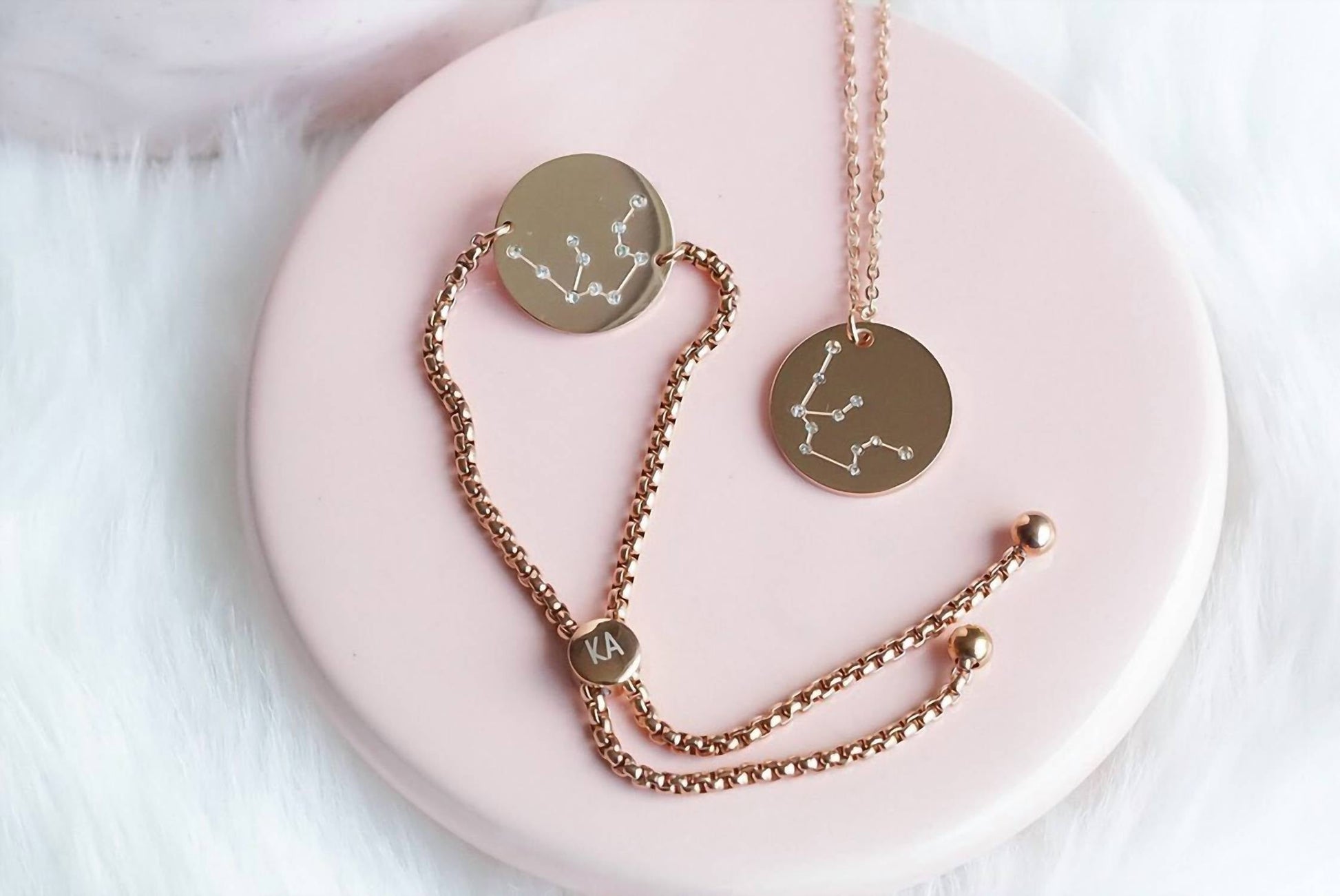 Discover the Women's Aquarius Necklace by KINSLEY ARMELLE, a stunning statement piece in elegant rose gold. This necklace is crafted from hypoallergenic 18K rose gold ion plated stainless steel and accented with zircon gemstones, ensuring it's both fashionable and sensitive skin-friendly. The versatile design comes with an 18 or 22-inch length and includes a 3-inch attached extender for custom fit, perfect for any outfit. Ideal for those seeking both style and comfort in their jewelry collection.