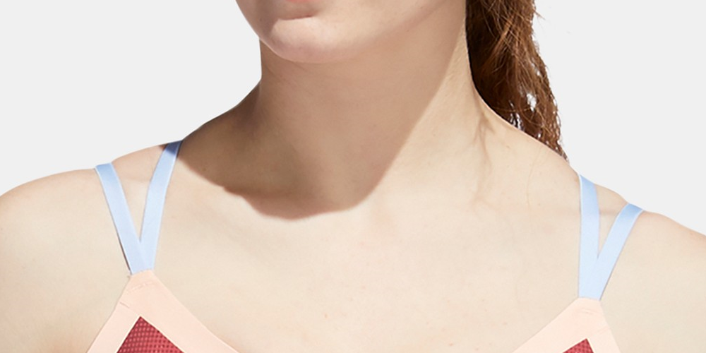 A altura aproximada da modelo é 1,78 m e ela veste tamanho pequeno | Fica acima da cintura; costas com alças e tela; ajuste de compressão | Cobertura total | Sutiã esportivo de baixo impacto, ideal para ioga, pilates e descanso | Ventilação ClimaCool® | Decote redondo