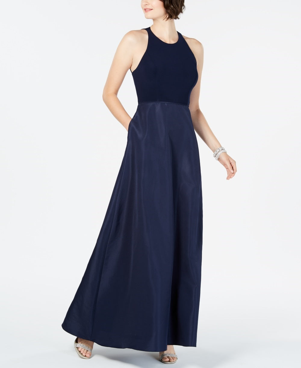 Aproximadamente 137 cm de comprimento, do centro do pescoço até a bainha. O comprimento é baseado no tamanho 4 e varia 6 mm entre os tamanhos. | Decote redondo tipo halter; silhueta de vestido | Fecho de zíper oculto nas costas; fecho de colchete na nuca | Costas abertas; bolsos no quadril; saia de organza | OBSERVAÇÃO IMPORTANTE: Este item chega com uma etiqueta de devolução e instruções para remoção. Após a remoção da etiqueta do vestido, este item não poderá ser devolvido.