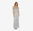 Brilhe em seu evento especial com um vestido metálico longo da Adrianna Papell. | Aproximadamente 62 de comprimento do centro do pescoço até a bainha e varia 1/4 entre os tamanhos | Vestido formal longo | Decote coração; Corte sereia | Fecho de zíper nas costas | Mangas esvoaçantes | Detalhe torcido na cintura frontal; drapeado na saia frontal