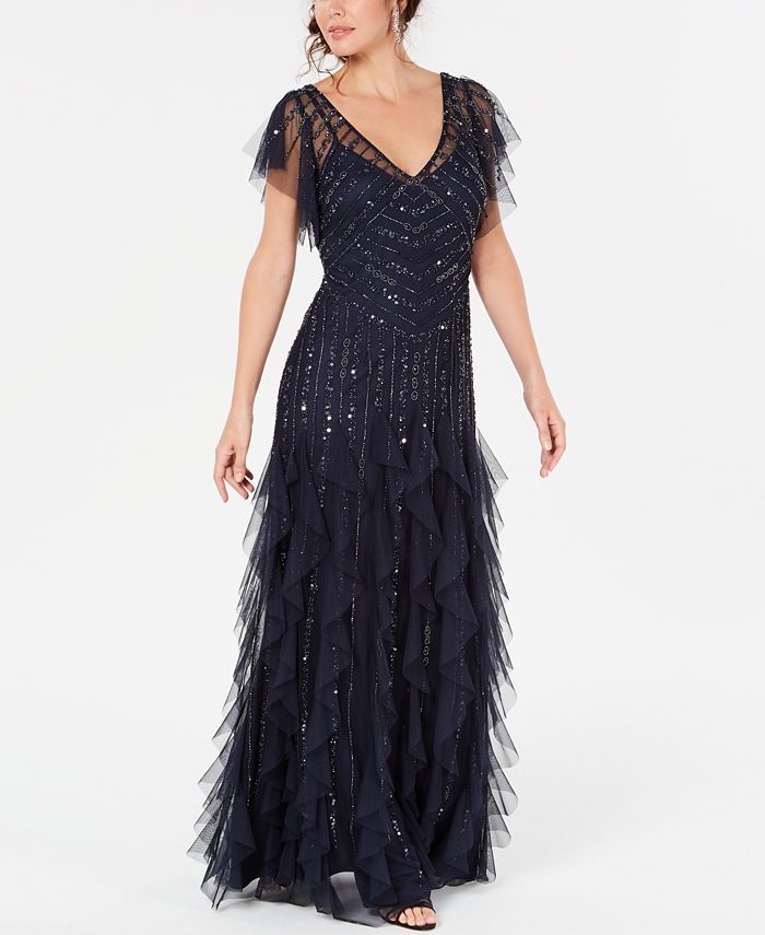 Brilhe do anoitecer ao amanhecer. O vestido cintilante e leve de Adrianna Papell balança e arrasa na pista de dança. | Aproximadamente 132 cm de comprimento, do centro do pescoço até a bainha. O comprimento é baseado no tamanho 4 e varia 0,6 cm entre os tamanhos. | Decote em V; Silhueta do vestido. | Fecho de zíper invisível nas costas. | Mangas curtas e amplas.