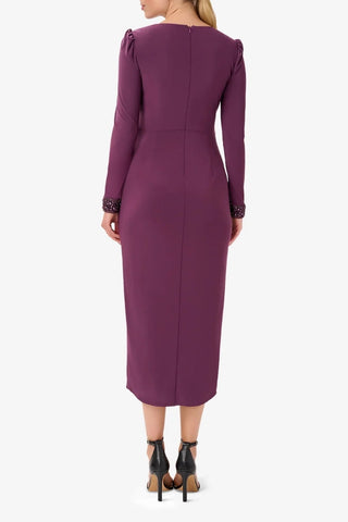 Vestido midi envelope preto de jersey feminino Adrianna Papell, manga comprida, tamanho M
