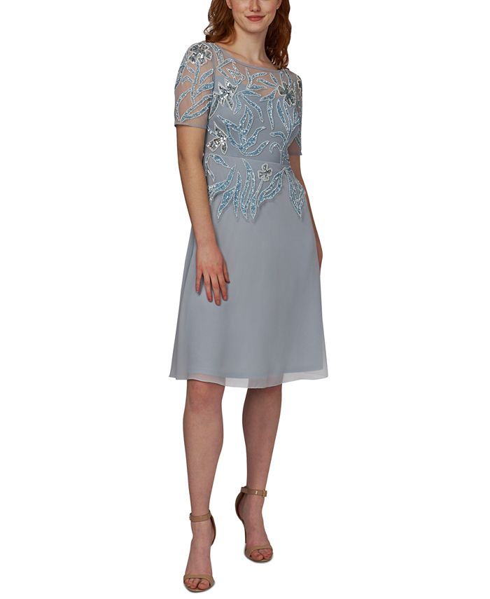 Vestido de coquetel feminino Adrianna Papell com contas, azul, tamanho 4