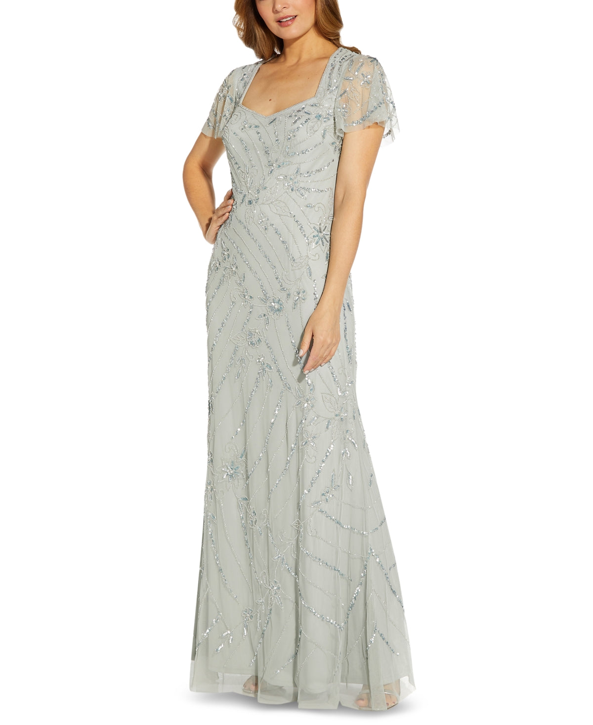 Vestido de noite feminino Adrianna Papell com contas, azul, tamanho 12, pequeno