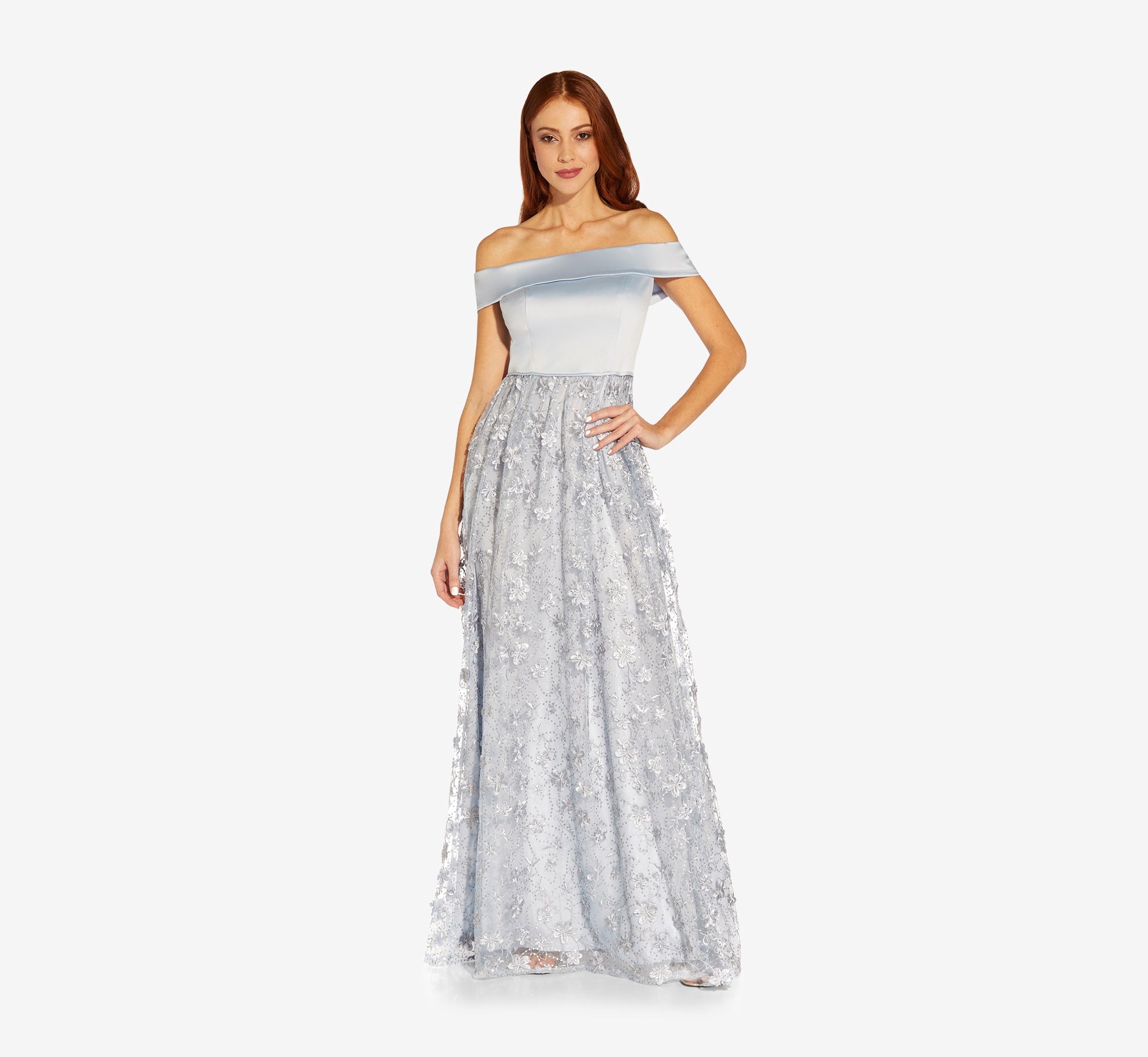 Vestido de festa feminino Adrianna Papell com decote ombro a ombro e contas 3D, marrom, tamanho 14