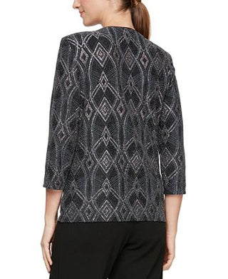 Alex Evenings Top feminino com lantejoulas e estampa popover, preto, tamanho 1X
