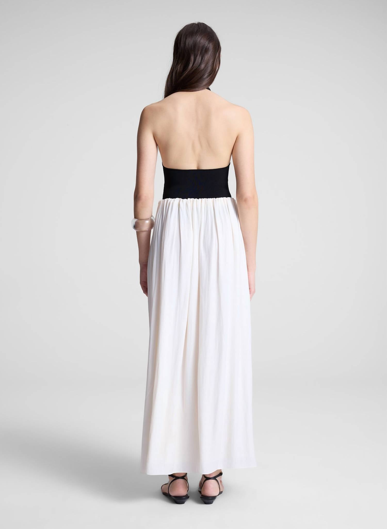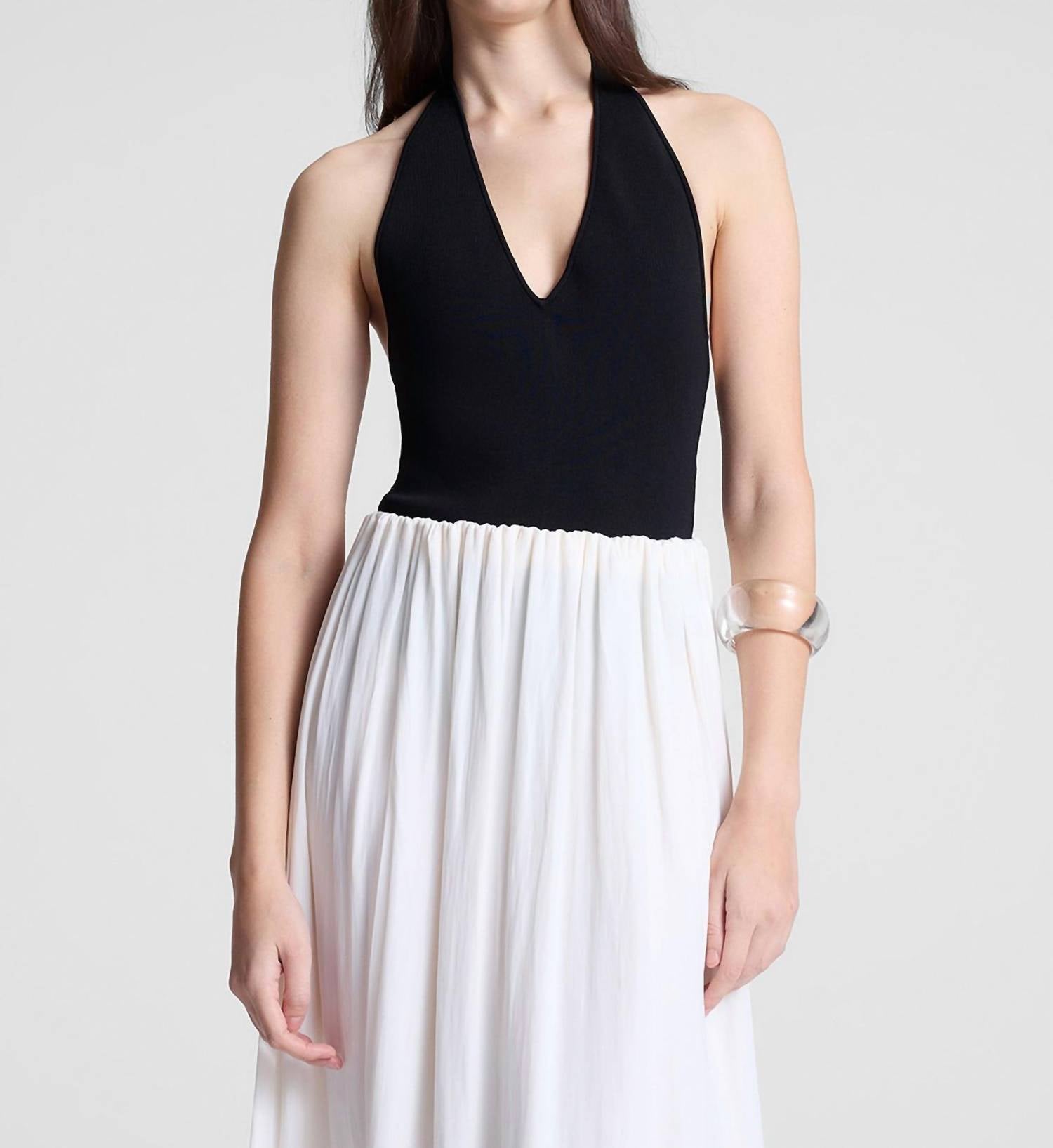 The Lila Bodysuit by A.L.C. offers a sleek, sculpting fit with its sleeveless design, composed of 62% Rayon, 35% Nylon, and 3% Elastane. This high-density knit fabric in a classic black hue features a deep V-neckline and open-back, delivering a smooth, elongated silhouette with a refined sheen. Garment length stands at 27 inches, complemented by a partially lined interior and convenient snap closure. For care, opt for hand washing or dry cleaning. Model is 5'9.5" wearing a size S (Bust 31", Waist 24", Hips 36").