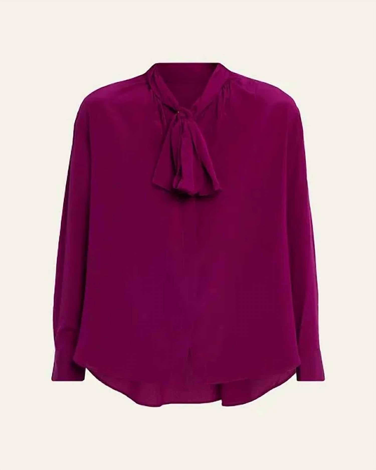 Rendered in a vibrant jewel tone, this tie-neck blouse is crafted from silk and features elegant gathering at the back placket. The versatile silhouette can be worn undone or with a strap draped over one shoulder. For a more tailored fit, please consider sizing down