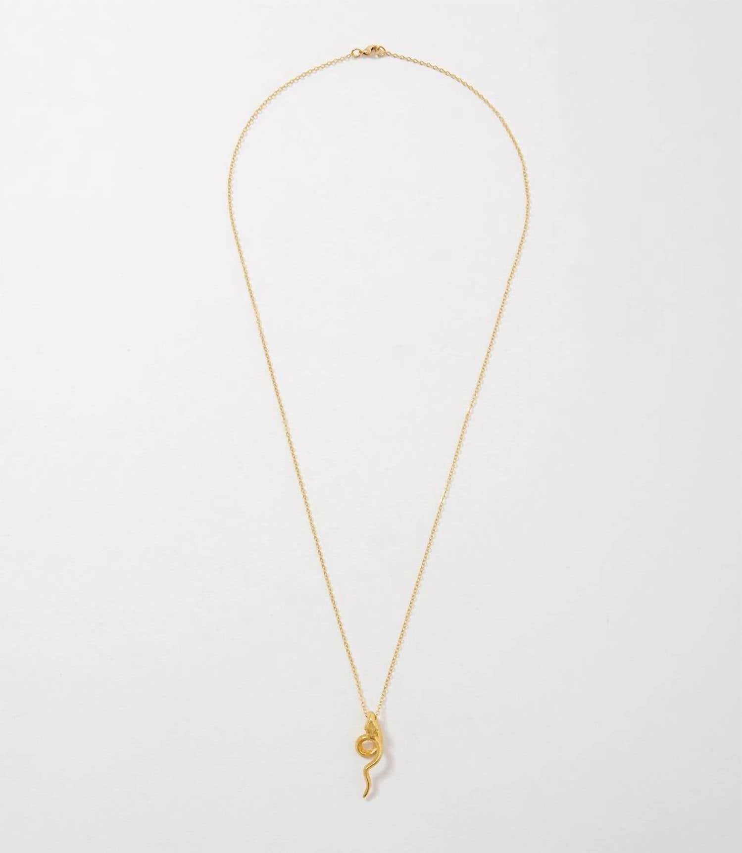 The perfect stand-out necklace that complements even the most basic t-shirt. Elevate your style with the Gold Snake Necklace by AJS Design Studio, plated in luxurious 22k gold for an edgy yet sophisticated touch. With an overall length of 18 inches and a 1.5-inch pendant, this piece exudes elegance and boldness. Made in the USA and boasting a lobster clasp, it ensures both quality and ease of wear. Weighing just 0.17 oz, it's perfect for all-day comfort without compromising on style.