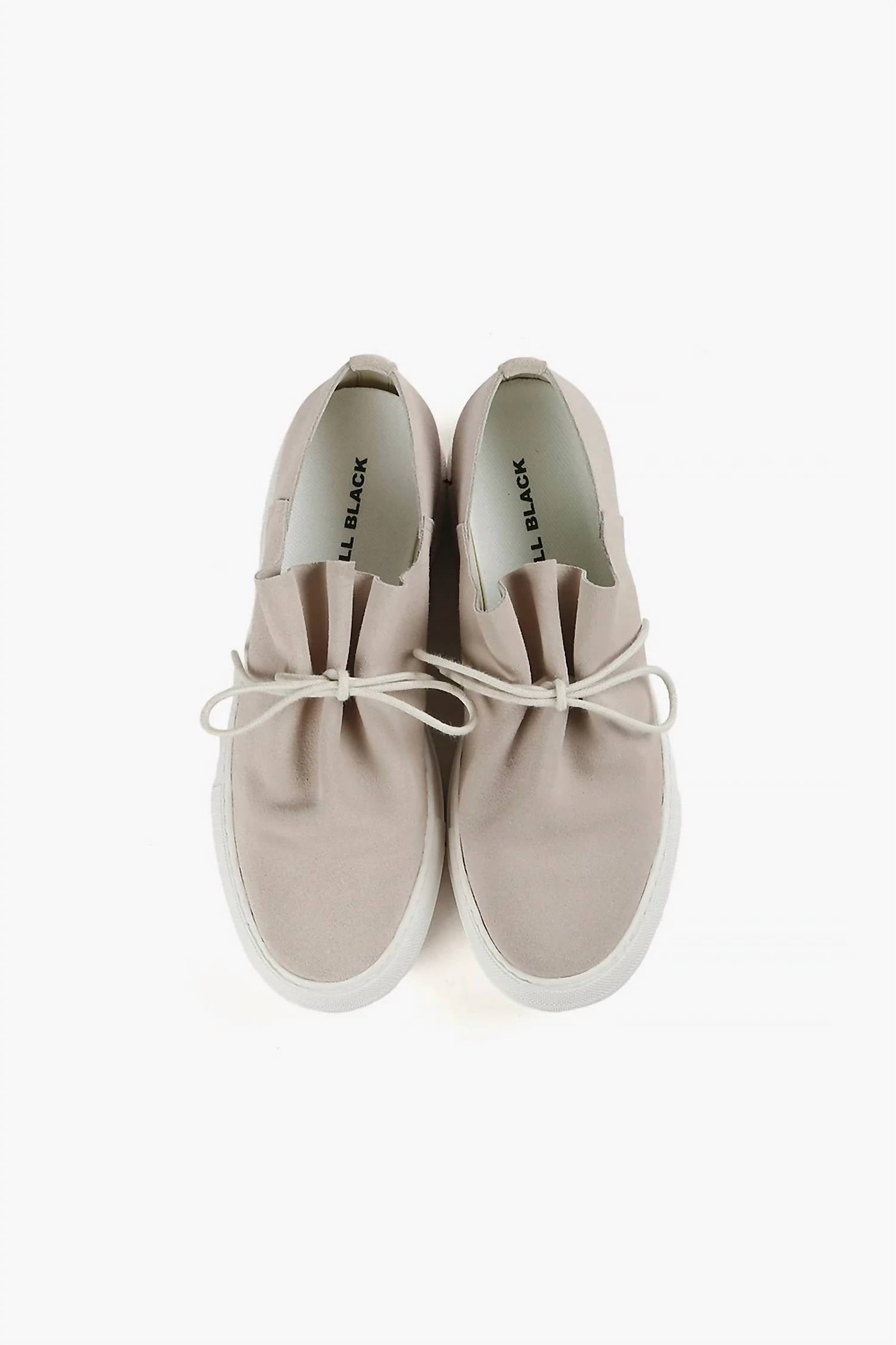 Step into style with the Women's Gathered Sneaker by ALL BLACK, offering a chic grey finish for the fashion-forward individual. These sneakers boast a cow leather upper that effortlessly marries quality and sophistication, complemented by a fabric insole for added comfort. The synthetic outsole ensures durability, while the round toe shape provides a modern touch. Perfect for daily wear, these sneakers blend comfort and elegance.