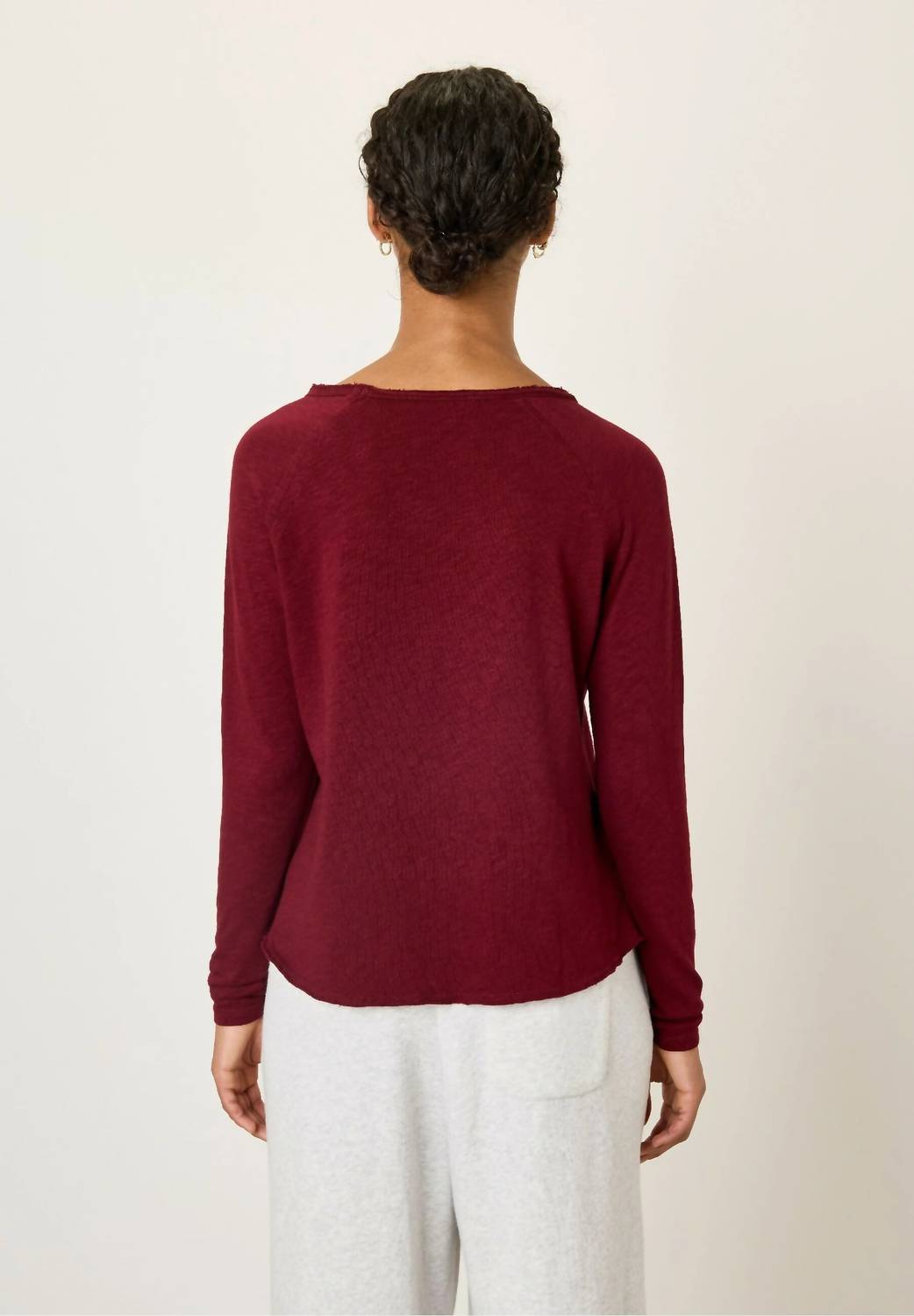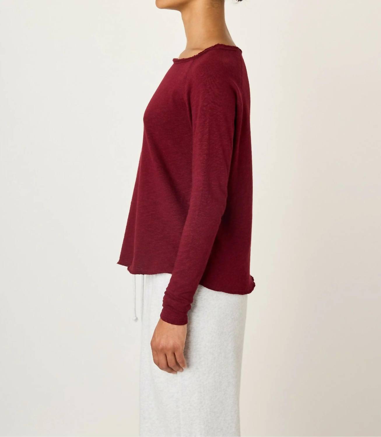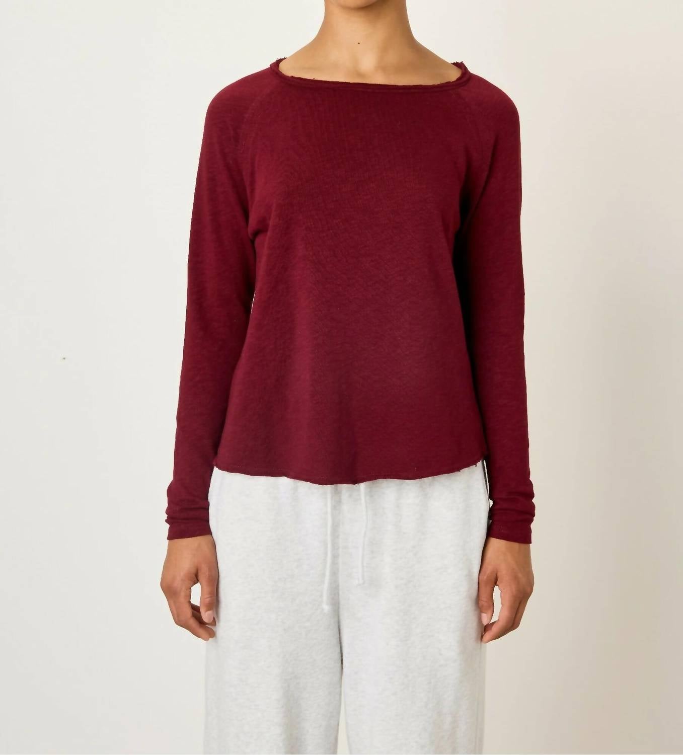 Great fit, cute design, soft fabric. You'll love everything about this long sleeve tee. The Sonoma T Shirt by American Vintage is a chic Cerisier maroon piece, perfect for your fall wardrobe. This long sleeve tee offers a flattering and cozy fit, composed of 100% cotton for softness. With a pull-on closure and minimalist boatneck design, it’s ideal for layering or wearing alone. Care is easy with machine wash cold and air dry instructions. Model is 171 cm tall and wears a size S.