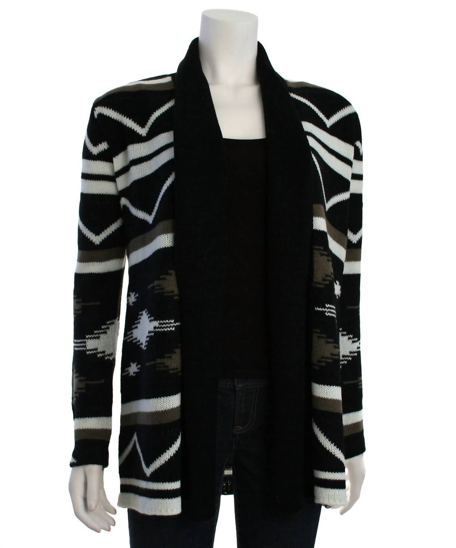 Throw this adorable cardigan over any cami or tank top. Experience comfort and effortless style with the BB Dakota Women's Denny Long Knit Cardigan in Multi. This patterned cardigan features long sleeves and a collared neckline, offering a chic boho vibe for your fall wardrobe. The open-front design and longer length make it a versatile layering piece for any occasion, whether you’re on vacation or celebrating Thanksgiving. This cardigan embodies relaxed elegance, perfect for the season.