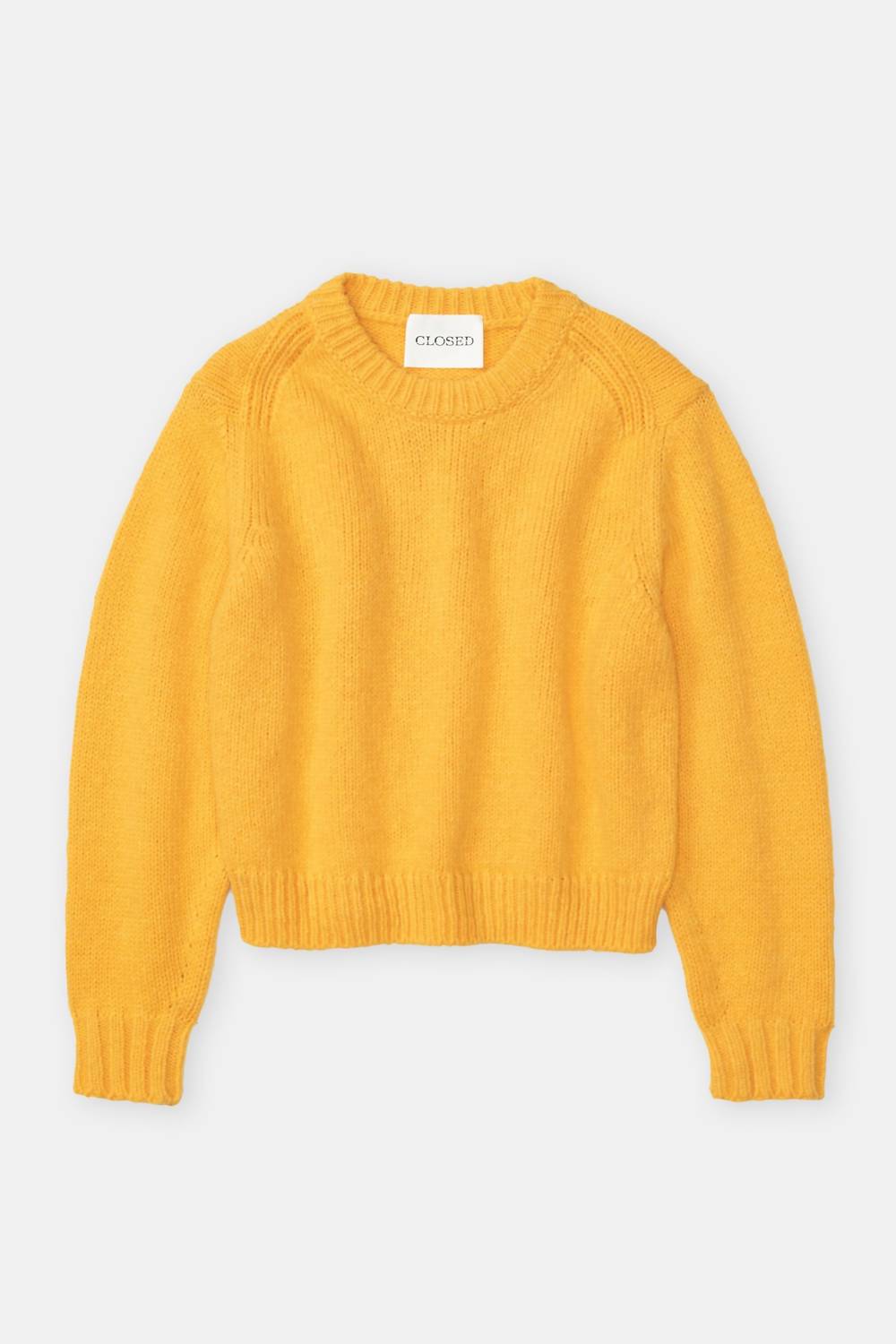 Experience the perfect blend of comfort and style with this trendy crew neck sweater, designed to effortlessly elevate your wardrobe. Pair it with your favorite denim and loafers for the perfect look. Elevate your fall wardrobe with the Closed Womens Alpaca Mix Jumper in vibrant Irish Orange. This chunky knit crewneck features long sleeves and is expertly crafted in Turkey from a luxurious blend of 68% alpaca, 22% nylon, and 10% wool for a super soft feel. Designed with a flattering regular fit, this jumper measures approximately 54 cm (21.3 inches) in length for size S and is finished with wide cuffs at the neck, sleeves, and hem. Closure: Pull on. Care: Hand wash and lay flat to dry. Model is 1.78 m (5'84) wearing size S.