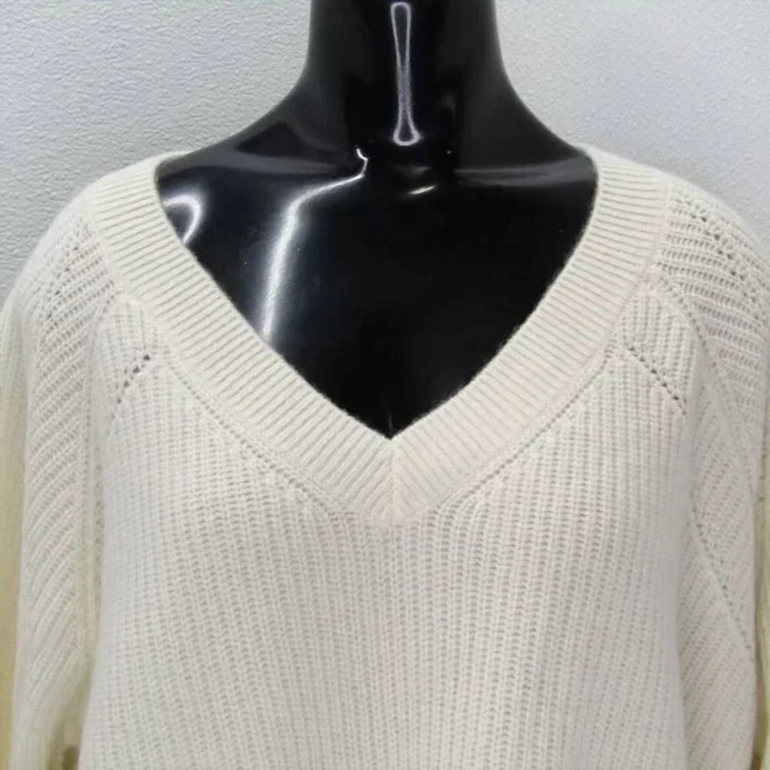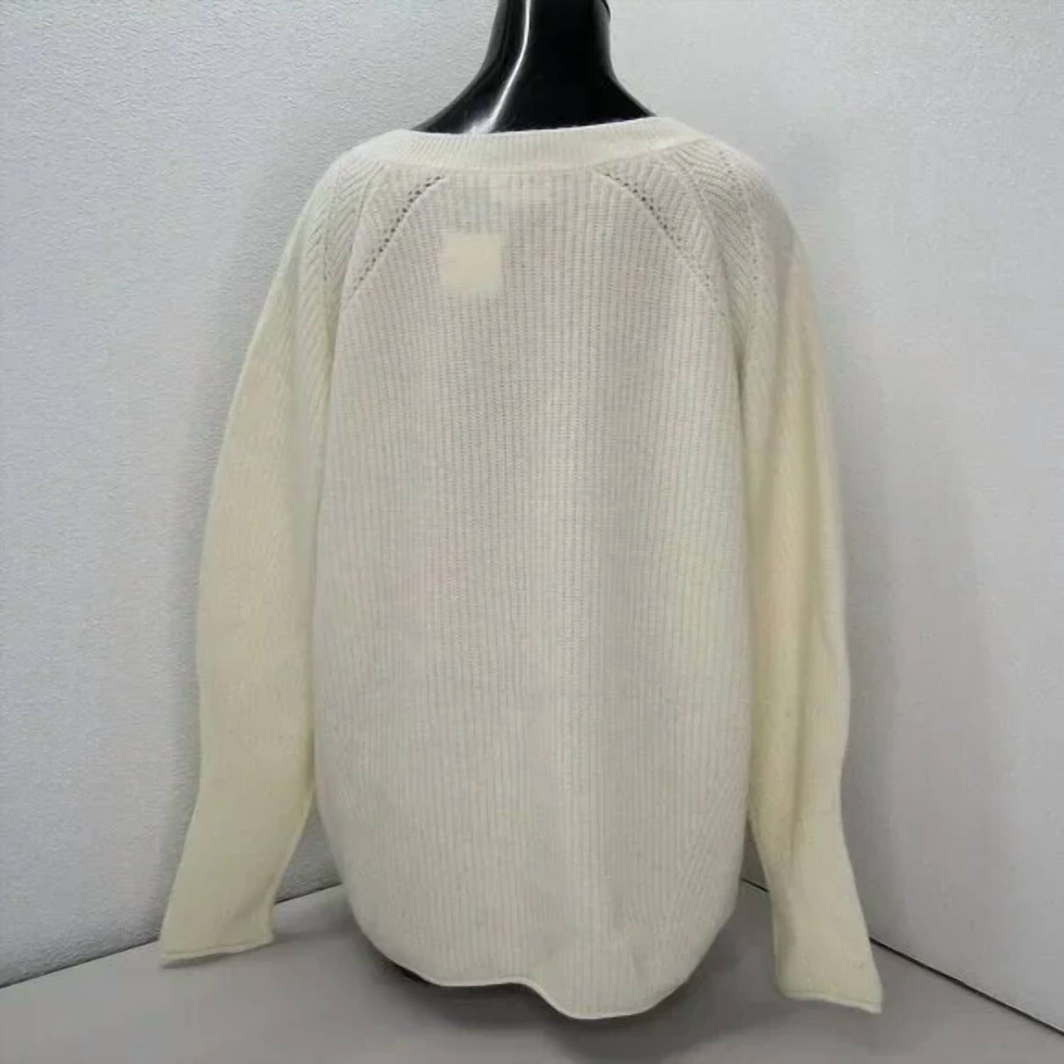 Indulge in luxurious comfort with the Club Monaco Women's Cashmere V-neck Long Sleeve Sweater in elegant ivory. Crafted from 100% ultra-soft cashmere, this pullover features a flattering V-neckline and long sleeves, making it a chic choice for layering or standalone wear. With its relaxed fit and timeless appeal, it serves as a versatile addition to any minimalist wardrobe. Care: Dry clean only.