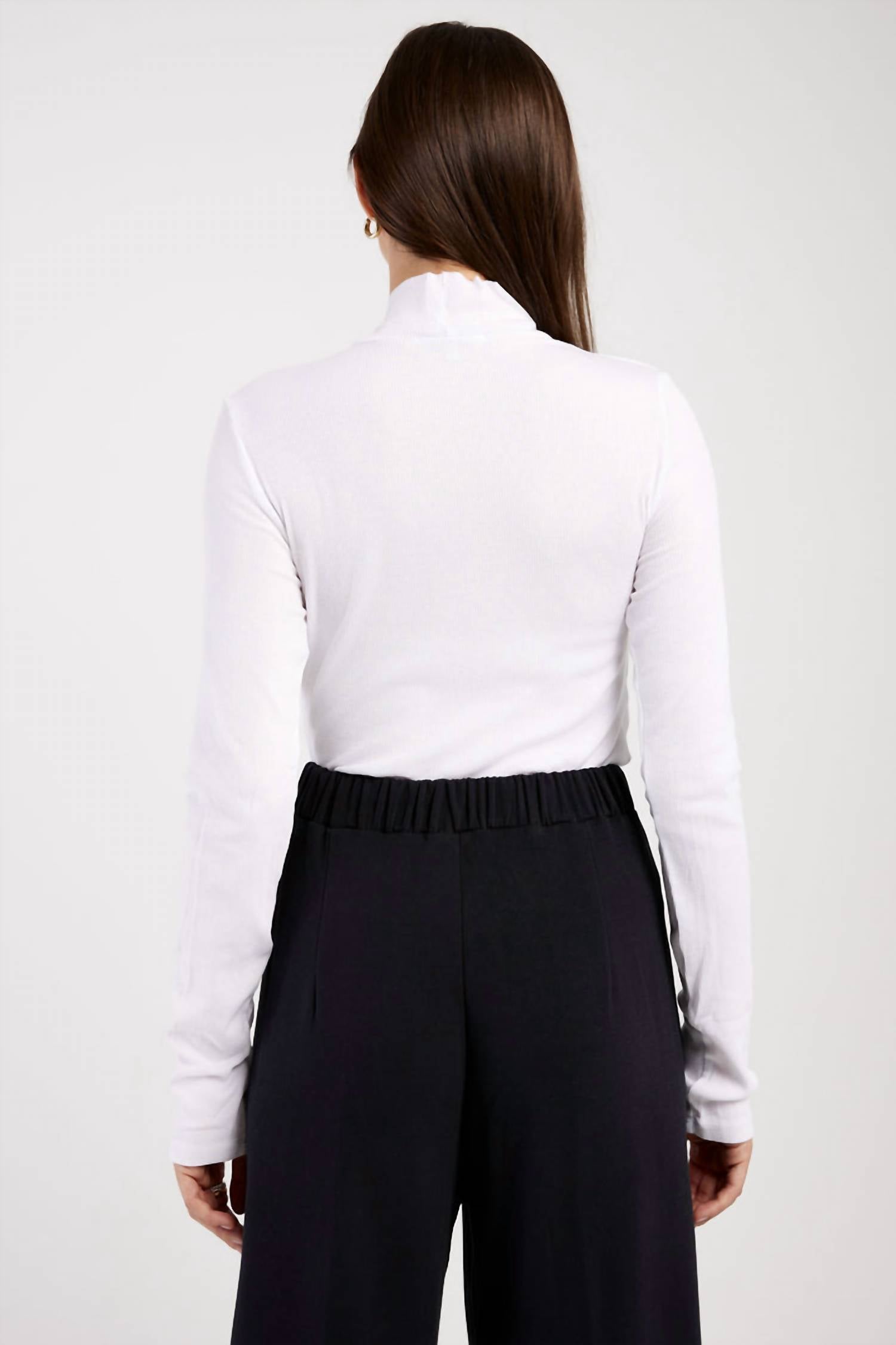 Layer under your favorite sweater or wear tucked into jeans for a perfectly polished winter look. Introducing the Verona Turtleneck Top by COTTON CITIZEN, a chic addition to your wardrobe in timeless white. This minimalist piece features a turtleneck design with long sleeves, perfect for fall and travel occasions. Made from a soft cotton blend, it offers a solid pattern and a convenient pull-on closure. Care for this versatile top with a machine wash and lay flat to dry for easy maintenance.