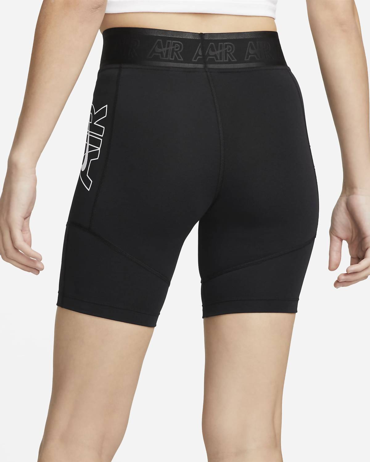 Athletic shorts that work for the gym or running errands! Elevate your workout wardrobe with the Nike Women's Air Bike and Fitness Shorts in Black, featuring a sleek graphic pattern and a supportive pull-on closure. Crafted from a blend of 61% cotton, 33% polyester, and 6% spandex, these mid-rise shorts offer a tight fit for a body-hugging feel that moves with you, ideal for spring athleisure trends. The alternating matte and shine Nike Air jacquard knit logo on the elastic waistband adds a stylish touch, while the smooth jersey fabric is perfect for a comfortable, everyday wear. Care instructions include machine washing.