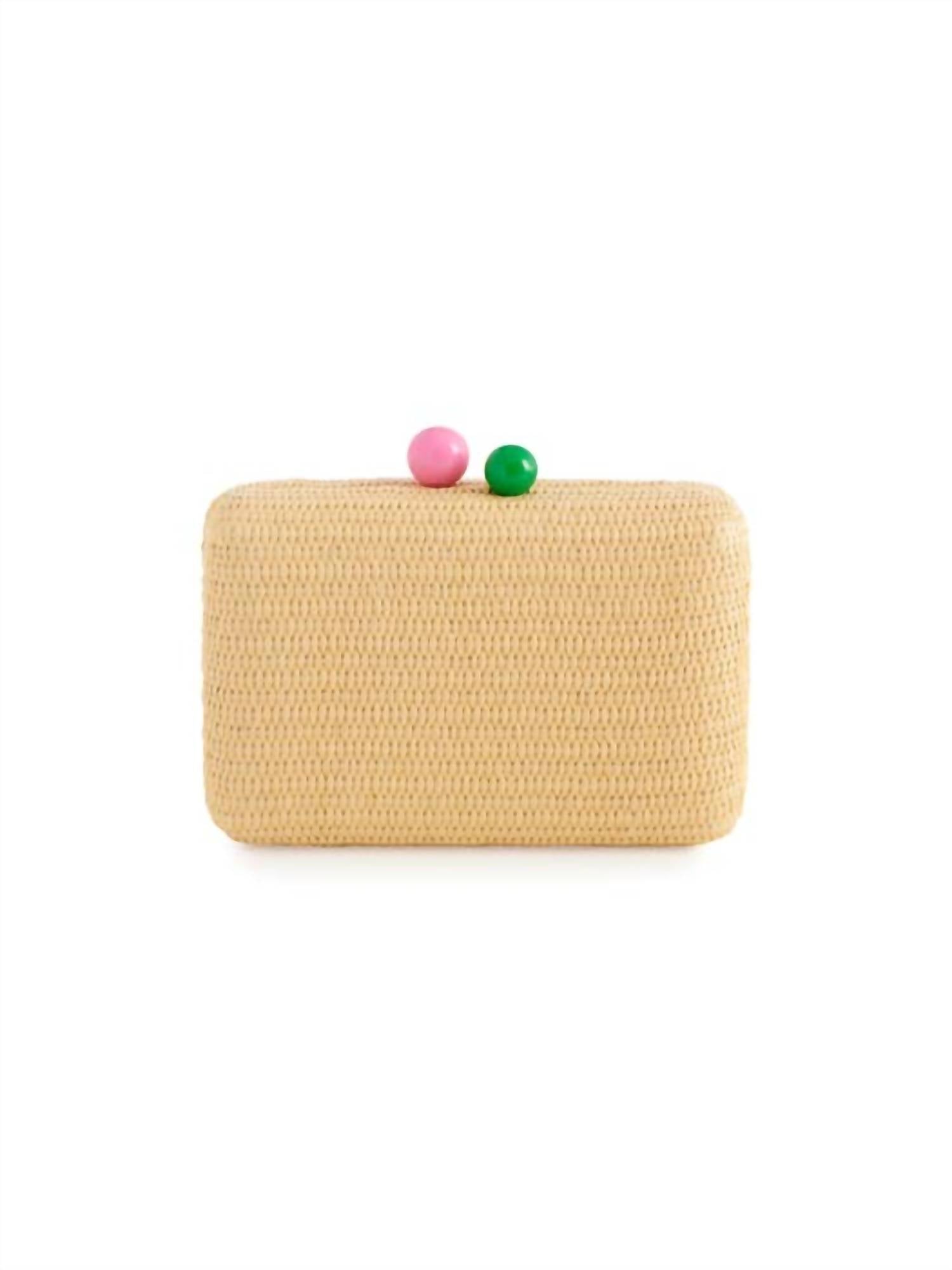 Lipstick, check. Mints, check. Credit card, check. The cutest little bag that holds all of your necessities. Introducing the Women's June Minaudiere Clutch Bag by Shiraleah, a chic accessory in a natural hue that exudes playful elegance. This handwoven piece, crafted from lightweight polyethylene, features a compact silhouette that is both functional and stylish. The bag boasts a magnetic frame with a vibrant color-pop clasp and comes with a detachable gold cross-body chain, allowing for versatile wear as a shoulder or handheld accessory. Elevate your ensemble with this statement piece, with dimensions of 2" in width and 4.25" in height, perfect for adding that extra touch of elegance to your look.