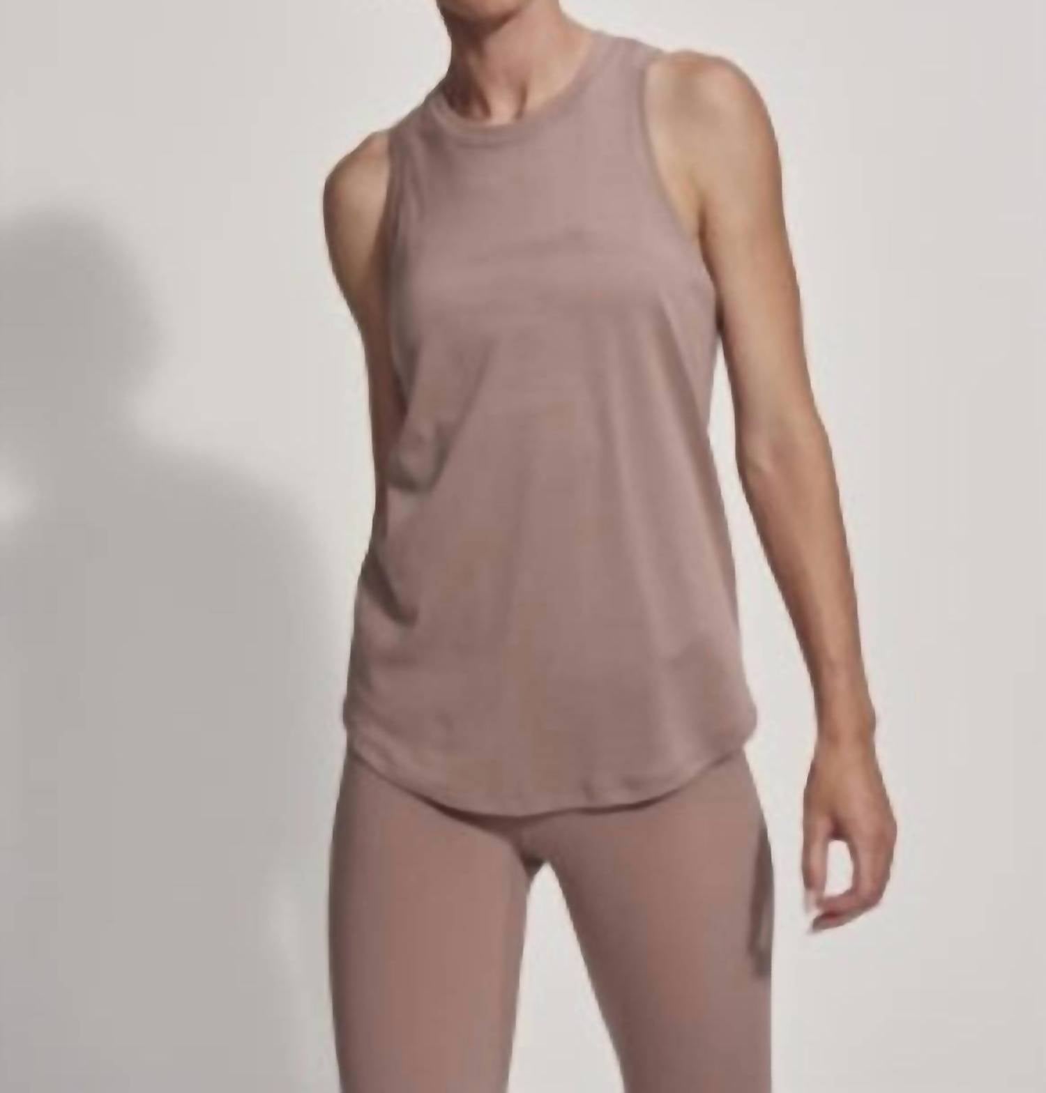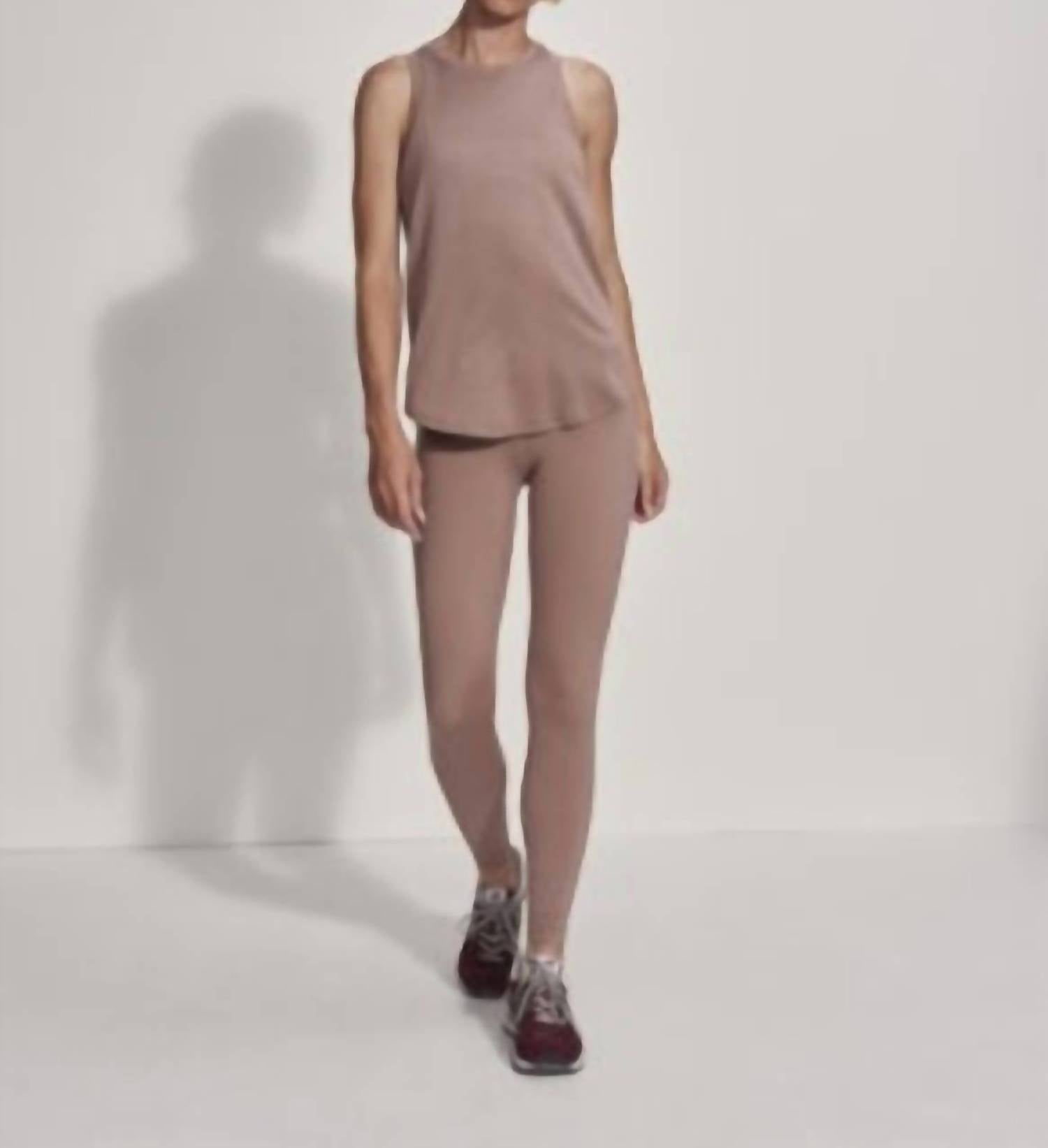 The Dacey Longline Tank Top by VARLEY is a stylish addition to your athleisure wardrobe, perfect for summer workouts. This sleeveless, racerback top features built-in breathability and a sleek, tank style silhouette in a solid Antler hue. Made from 100% Polyamide, it offers comfort and ease with its pull-on closure. Care instructions include machine washing cool and laying flat to dry. With a front length of 20.5".