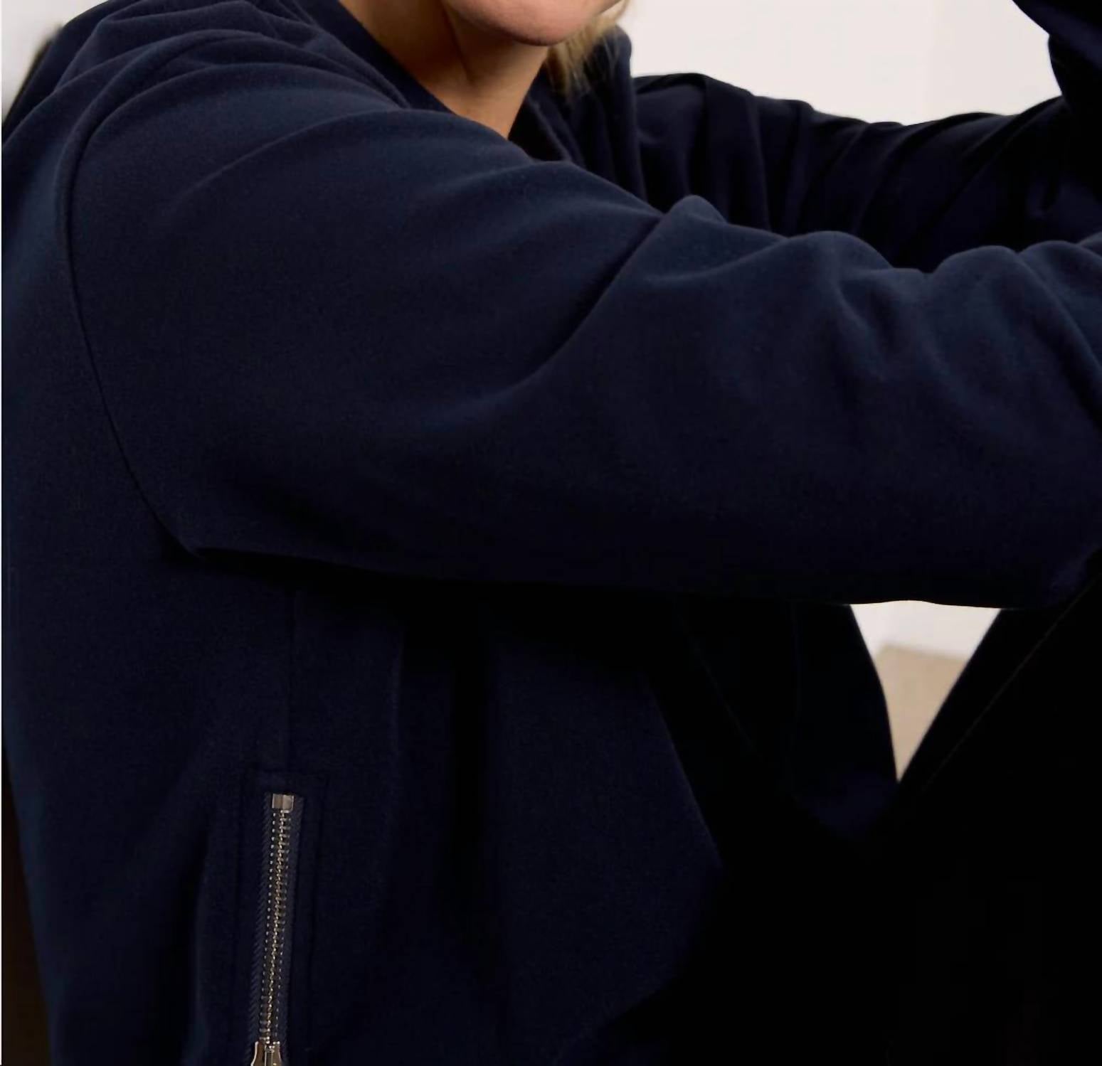 The Horton Side Zip Midlayer by Varley is an essential piece for achieving that effortless athleisure look. With long sleeves and a crew neck, this dark sapphire sweatshirt is made from a sumptuously ultra-soft 91% polyester and 9% elastane brushed rib knit, featuring a relaxed fit with thumbhole cuffs and zippered side details. Measuring 23.8" from shoulder to hem, this solid sweatshirt offers easy pull-on wear. Care for it by machine washing cold, laying flat to dry, and avoiding tumble drying or ironing for long-lasting comfort and style.