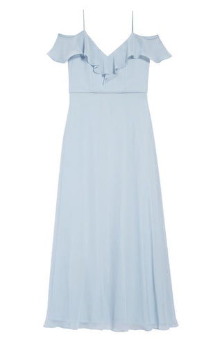 Dessy Collection Cold Shoulder Chiffon Flower Girl Dress in Mist, Size 8