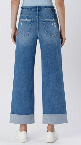 Lovervet - High Rise Double Cuffed Baggy Wide Leg Jeans