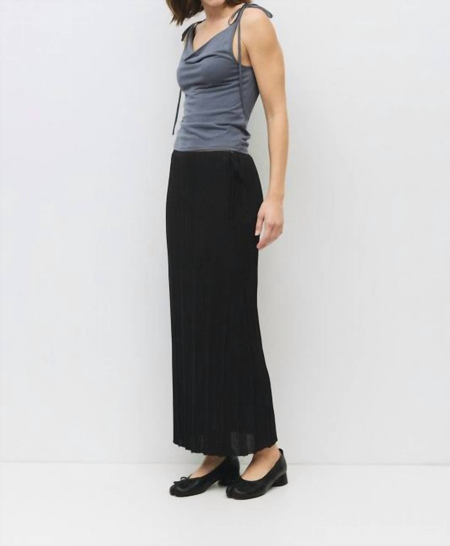 Uma blusa atemporal que nunca sai de moda. Apresentamos o Top Parker da all : row, um item essencial em tom carvão elegante para o seu guarda-roupa de primavera. Esta blusa sem mangas é confeccionada em uma mistura de 70% poliéster reciclado e 30% poliéster, proporcionando conforto e caimento perfeitos. Possui fecho de amarração com delicadas amarrações nos ombros e um elegante decote canoa, perfeito para um jantar. Cuidados: Lavar à mão.