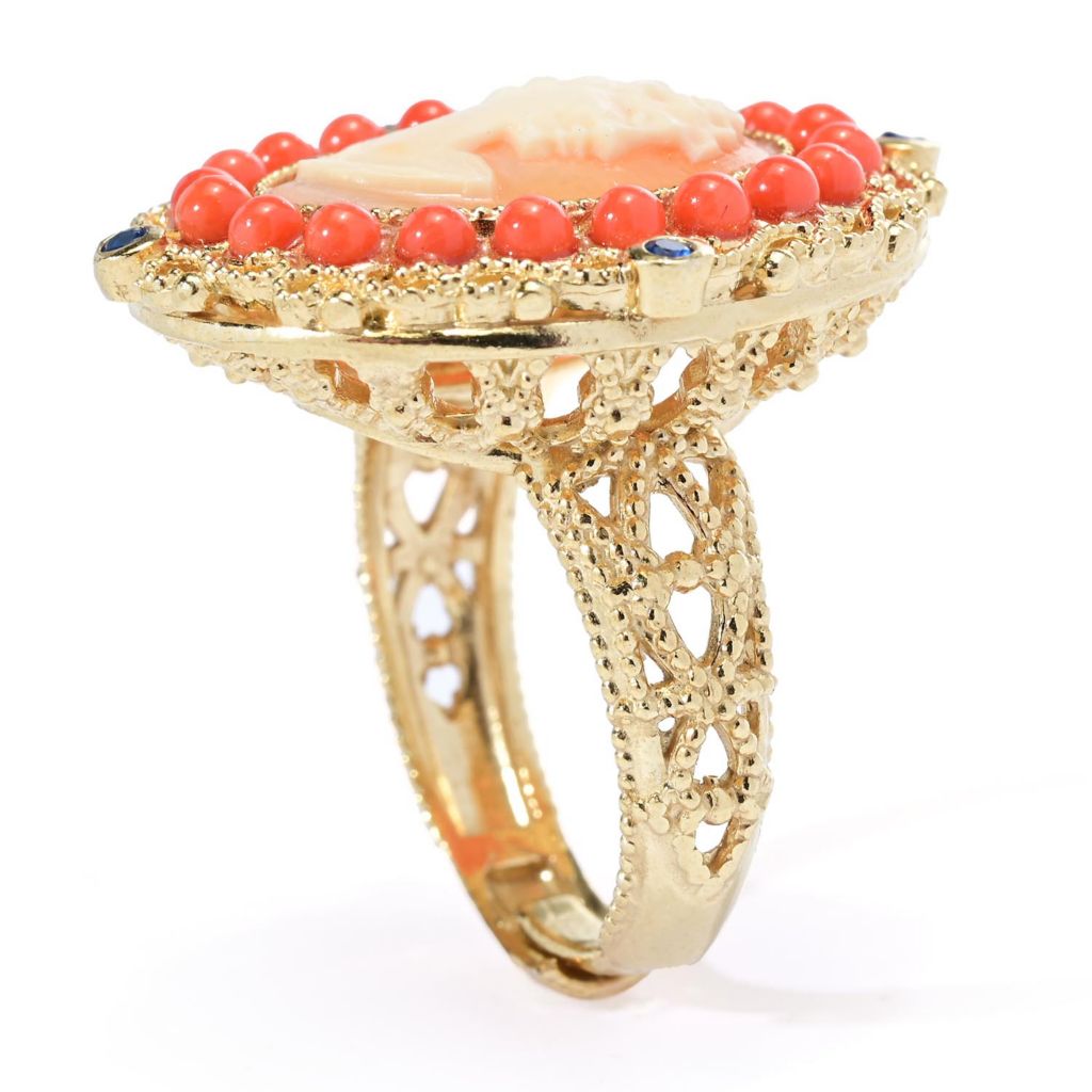 Cameo Italiano "Victoria" 16x12mm Retrato de Concha Cameo e Anel com Escolha de Pedras Preciosas