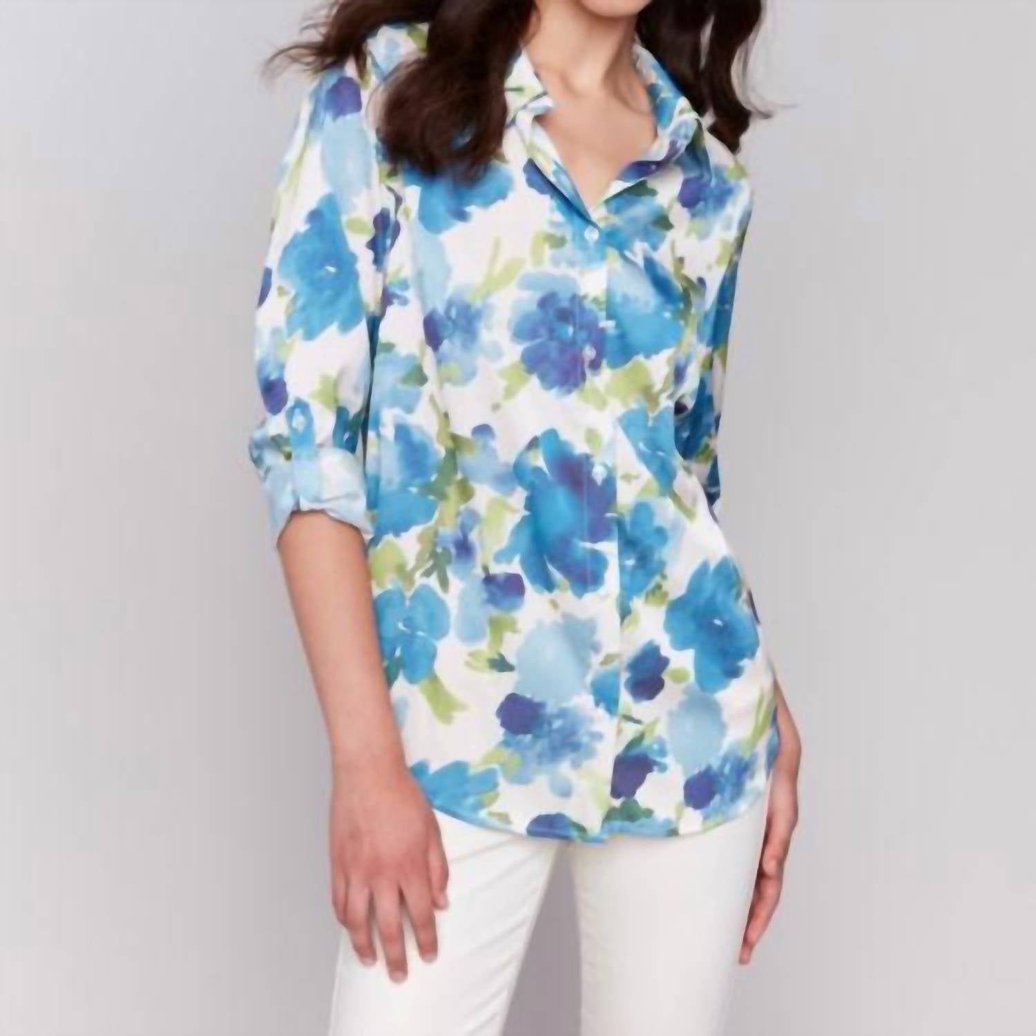 Eleve seu guarda-roupa de primavera com a Blusa Charlie B Estampada com Mangas Dobráveis na cor Verde-Limão, uma peça marcante adornada com um vibrante padrão floral. Esta elegante blusa de manga comprida oferece a versatilidade das abas dobráveis, permitindo que você personalize seu look para qualquer ocasião. Confeccionada em 97% poliéster e 3% elastano, possui fecho de botão e gola clássica. Cuide desta peça sofisticada lavando-a à mão e secando-a na horizontal.