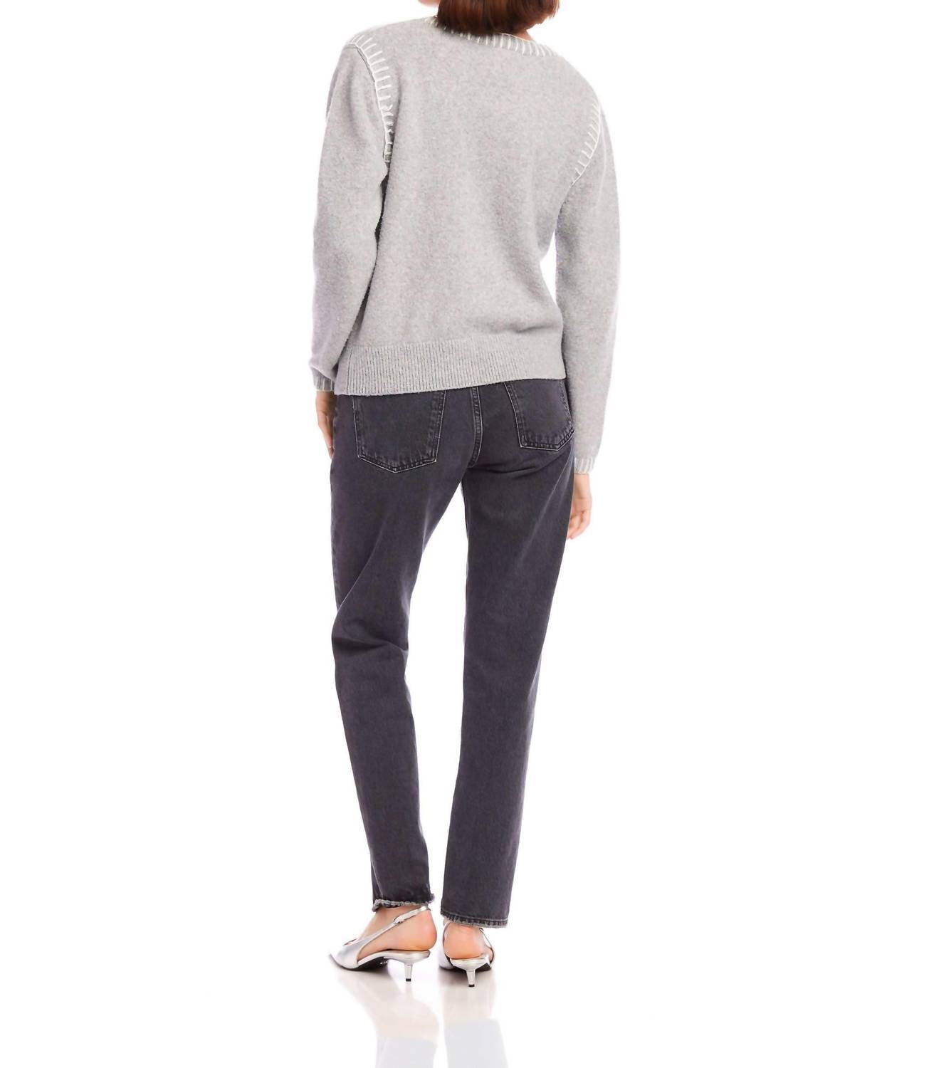 Você vai usar esse suéter confortável e clássico com gola em V durante toda a estação. Apresentamos o suéter com gola V Ali Stitch da Fifteen Twenty, um toque de estilo cinza perfeito para noites de outono e comemorações de Ano Novo. Este suéter possui mangas compridas com bainha e punhos canelados e é feito de uma mistura macia de 52% poliéster reciclado, 30% náilon, 15% poliéster e 3% elastano, garantindo conforto e sustentabilidade. Com 59 cm de comprimento, este suéter com estampa lisa oferece um toque único com seu detalhe de costura branca na borda. É importado, com fecho pull-on e requer lavagem a seco para manutenção, garantindo que continue sendo uma peça-chave no seu guarda-roupa inspirado na moda dos anos 90.