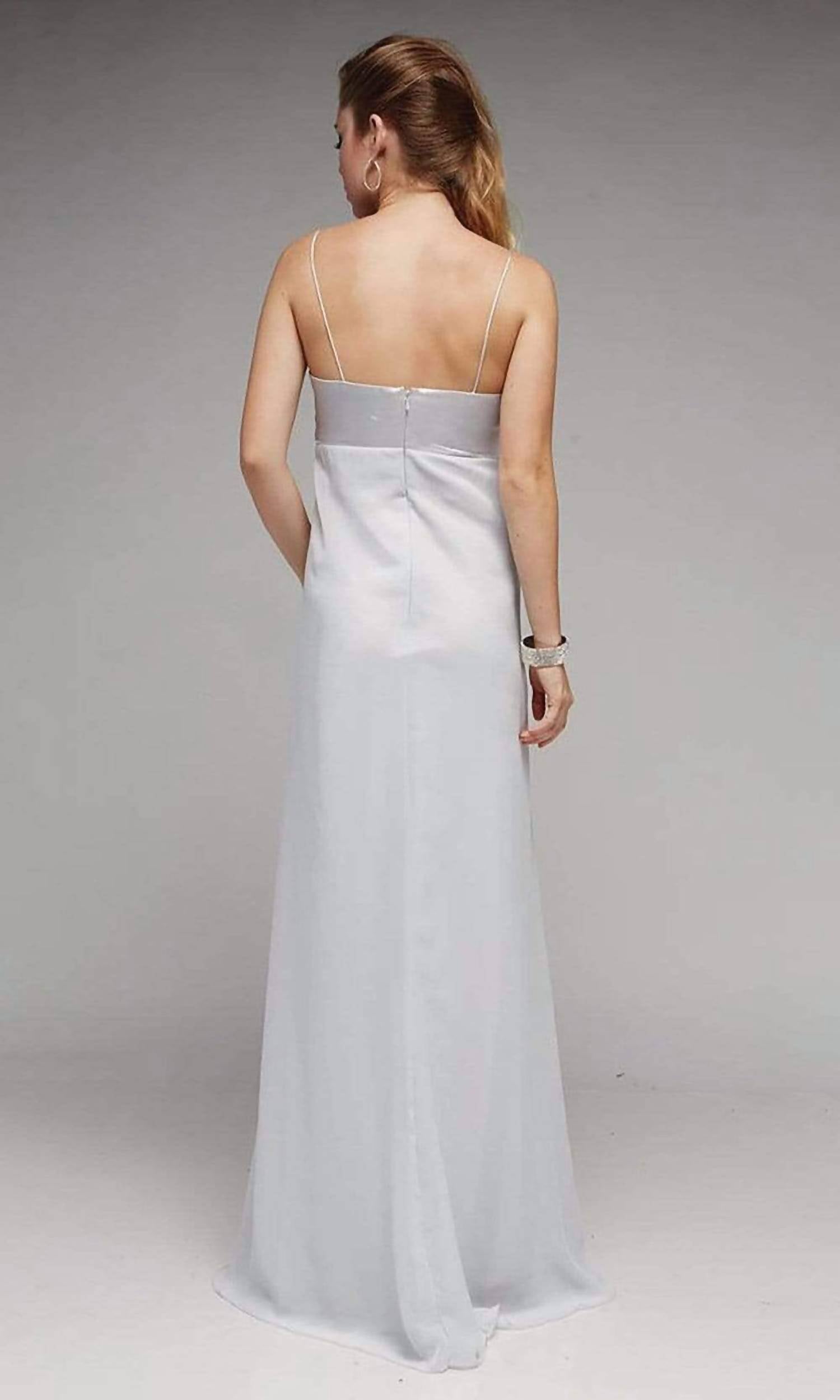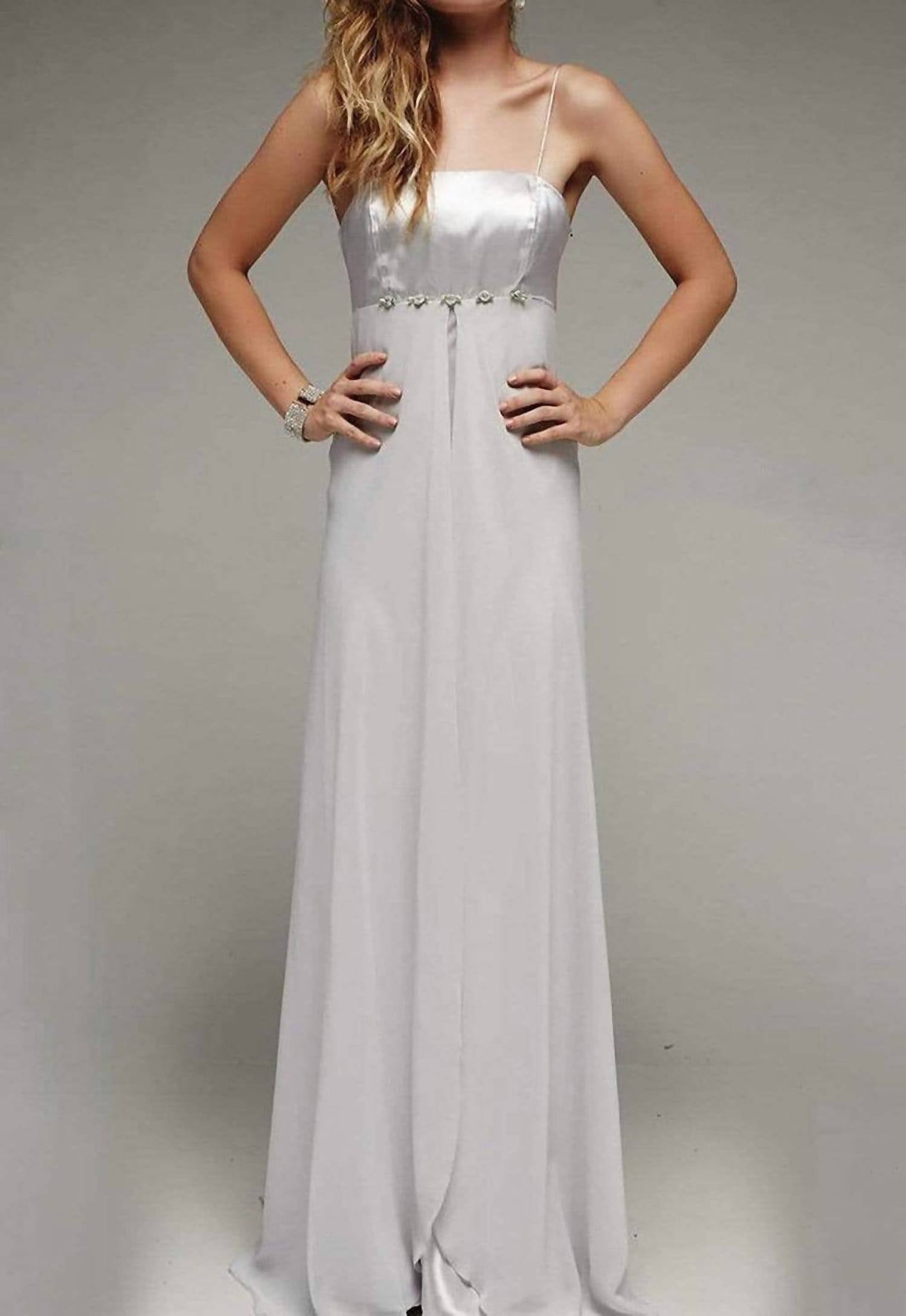 Just add a cute little clutch and a matching heel for the perfect event look. Step into elegance with the Silken Symphony Gown by Milano Formals, designed exclusively for women. This silver A-line prom dress features delicate spaghetti straps and a stylish square neckline. Crafted in a solid pattern, it offers a zip closure for a seamless fit. Perfect for fall occasions where a touch of sophistication is desired.