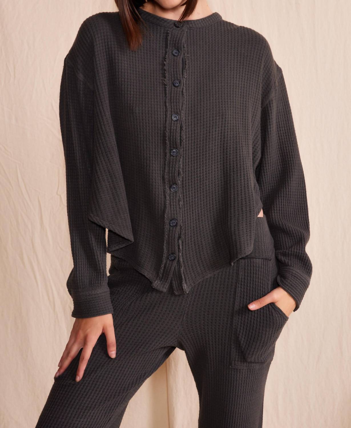 Uma camisa clássica de botões que nunca sai de moda. Descubra a Quinn Waffle Top da People of Leisure, uma escolha sustentável para o viajante ecoconsciente. Esta camisa de manga comprida é feita com 98% de cânhamo e 2% de elastano para um toque confortável e texturizado. O fecho é um clássico estilo abotoado, com uma gola redonda chique e um toque minimalista em cru. Cuide desta peça única lavando-a na máquina e secando em temperatura baixa para manter seu charme.