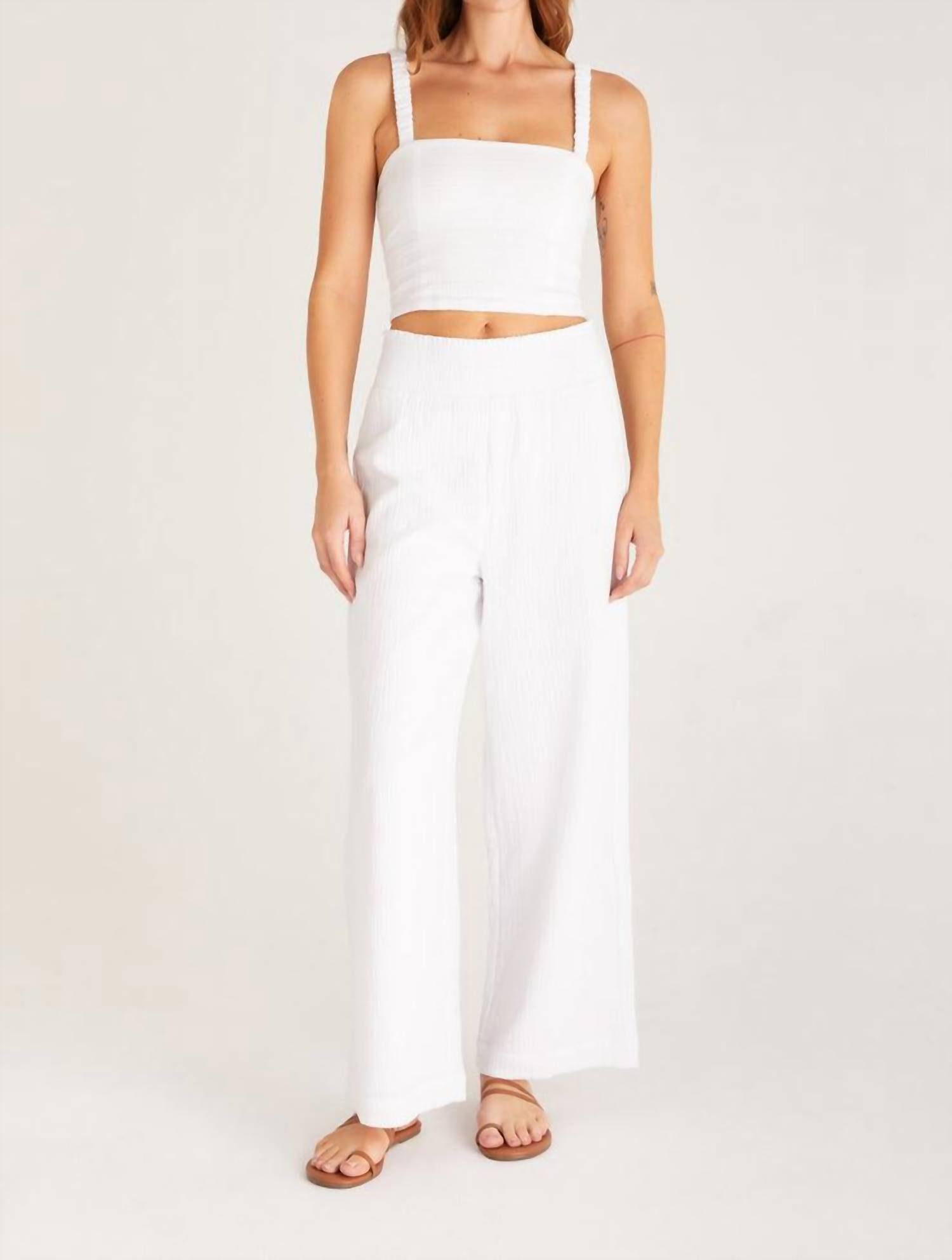 O top curto perfeito para os dias mais quentes. Incorporando a tendência dos tops cropped com um decote charmoso, este top justo é confeccionado em nosso tecido Double Gauze e possui alças elásticas, costas totalmente franzidas e cós justo. Lavagem à máquina com água fria. Double Gauze 100% algodão.