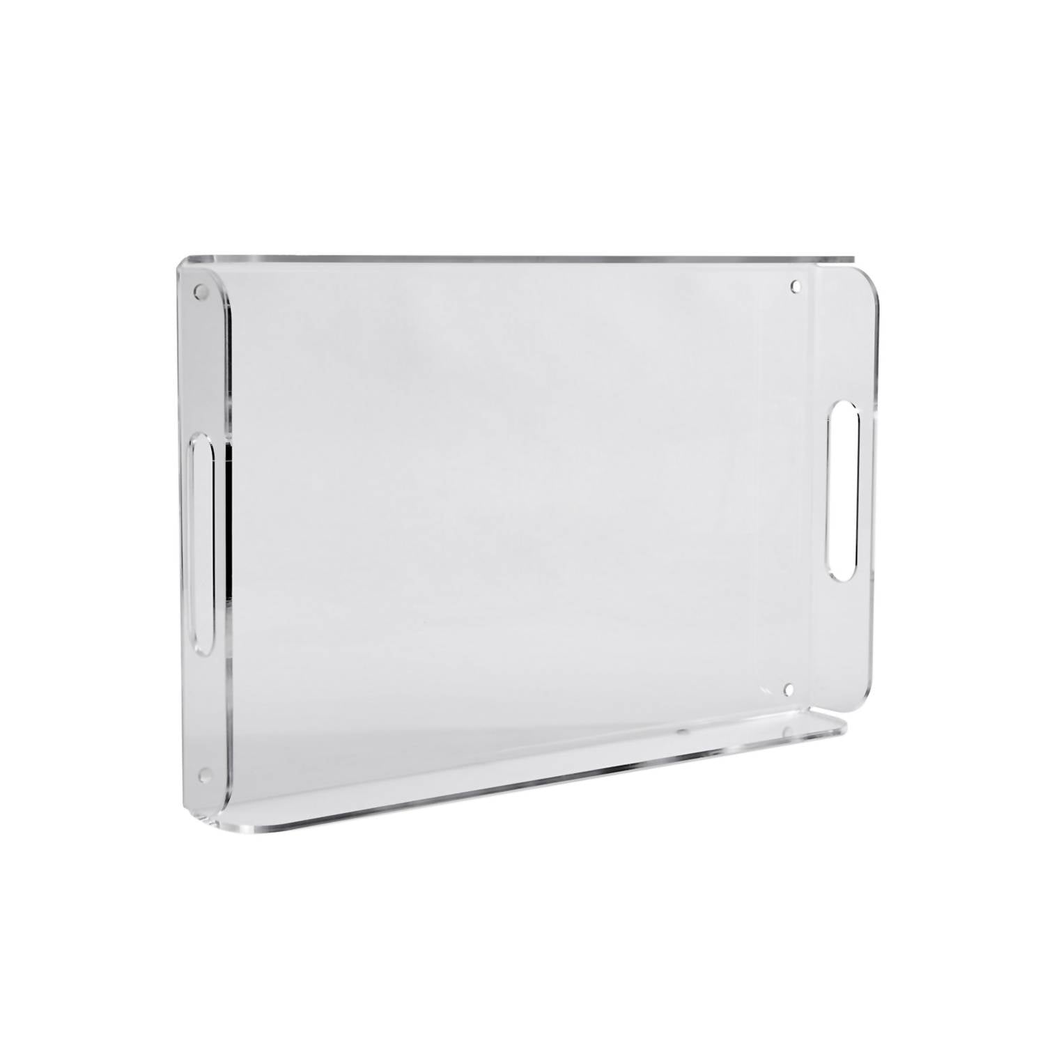 16,5 cm C x 26,5 cm L x 5 cm A. Material: Acrílico durável. Recomenda-se lavar à mão para manter a transparência e a integridade do acrílico.