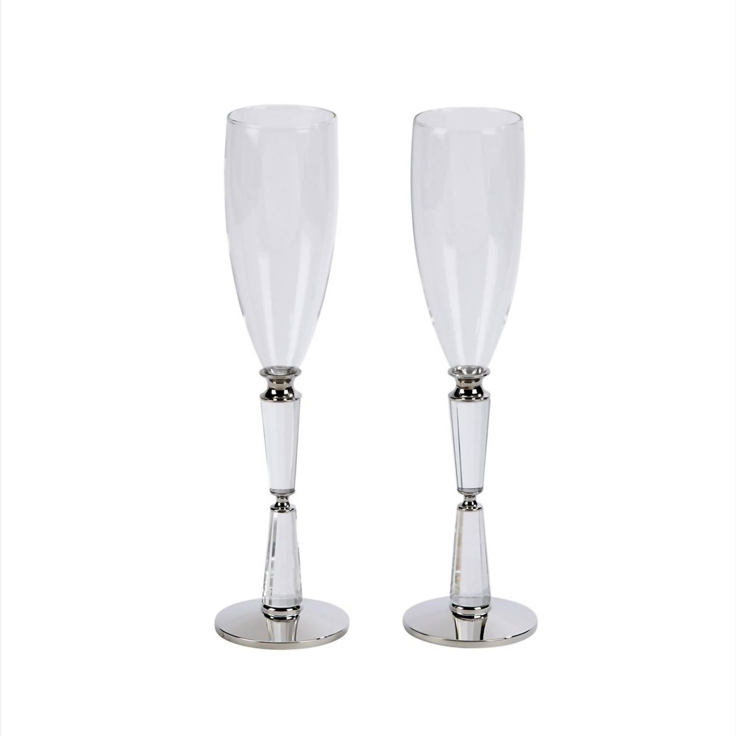 Altura impressionante de 26 cm para uma experiência de brinde elegante. Taças de vidro elegantes e modernas. Taça transparente com elegantes alças de vidro facetado. Base niquelada durável e antimanchas para qualidade duradoura. Personalizável com monograma ou iniciais gravadas para um toque pessoal. Vem em uma sofisticada caixa de presente prateada, perfeita para ocasiões especiais e presentes.