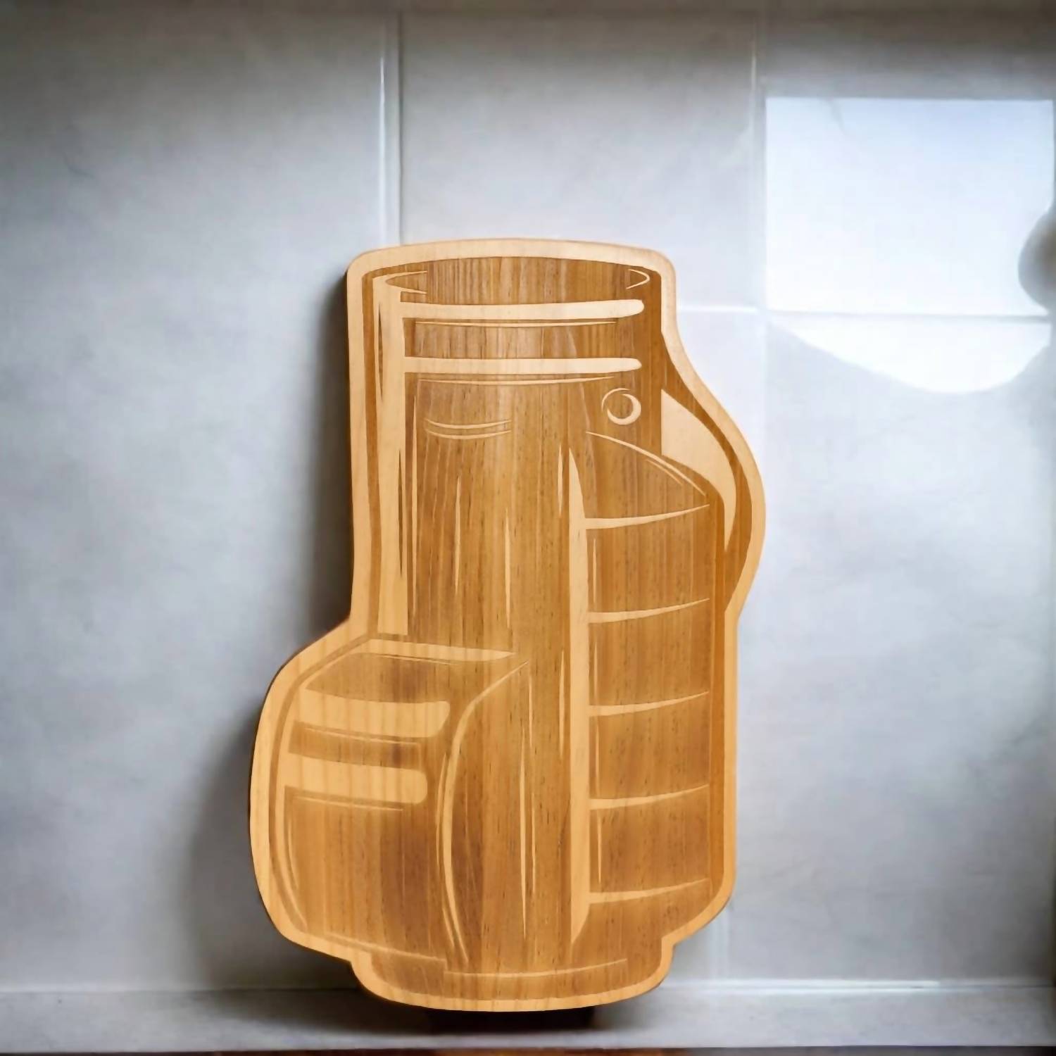 Tee off your entertaining with the Golf Club Bag Wood Board by Creative Gifts International, a must-have for golf enthusiasts and hosts. This brown charcuterie board, shaped like a golfer's bag, is both a stylish and functional centerpiece for gatherings, made from durable premium wood that’s easy on your knives. Measuring 19" long, 0.75" wide, and 12.75" high, it offers ample space for your display needs.