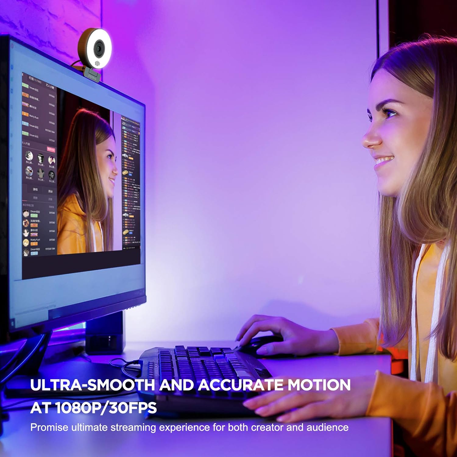 Webcam PAPALOOK PA552 para transmissão ao vivo com anel de luz