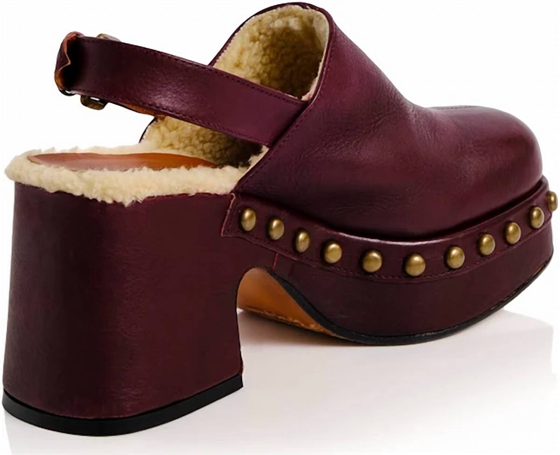 Apresentamos o Tamanco Feminino de Outono com Tachas da Free People, uma peça de destaque na sua coleção de calçados. Estes tamancos modernos são projetados com cabedal de couro e um solado plataforma chamativo, combinado com um salto bloco robusto e detalhes em tachas. Apresentam um estilo prático de calçar, com tira slingback com fivela ajustável e palmilha forrada com sherpa sintética para maior conforto. Fabricados na Itália, estes tamancos incorporam uma mistura perfeita de estilo e artesanato, ideais para combinar com suas calças jeans boca de sino favoritas. Salto bloco de 8,9 cm com plataforma.