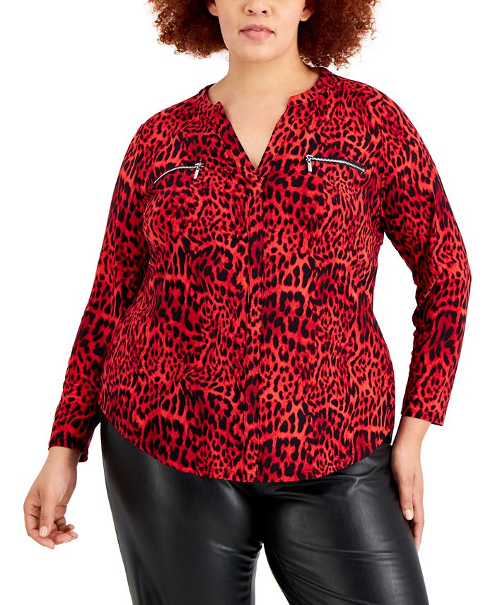 Uma estampa animal ousada e bolsos com zíper dão um novo visual a uma camisa plus size da Inc International Concepts