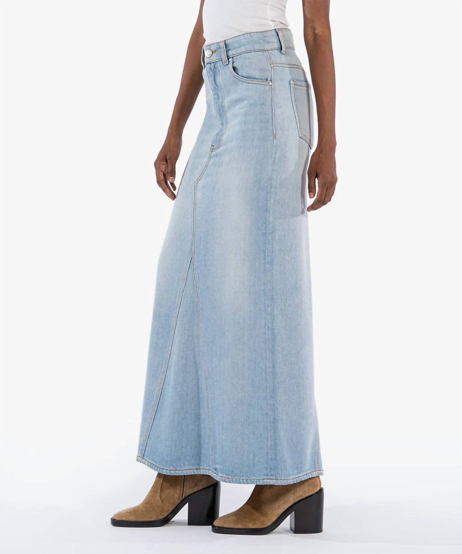 Quem não ama uma boa saia longa? Comprimento 96 cm. Braguilha com zíper e botão. Estilo com cinco bolsos. 100% liocel. Lavar à mão e secar no varal. Importado. Tamanho real.