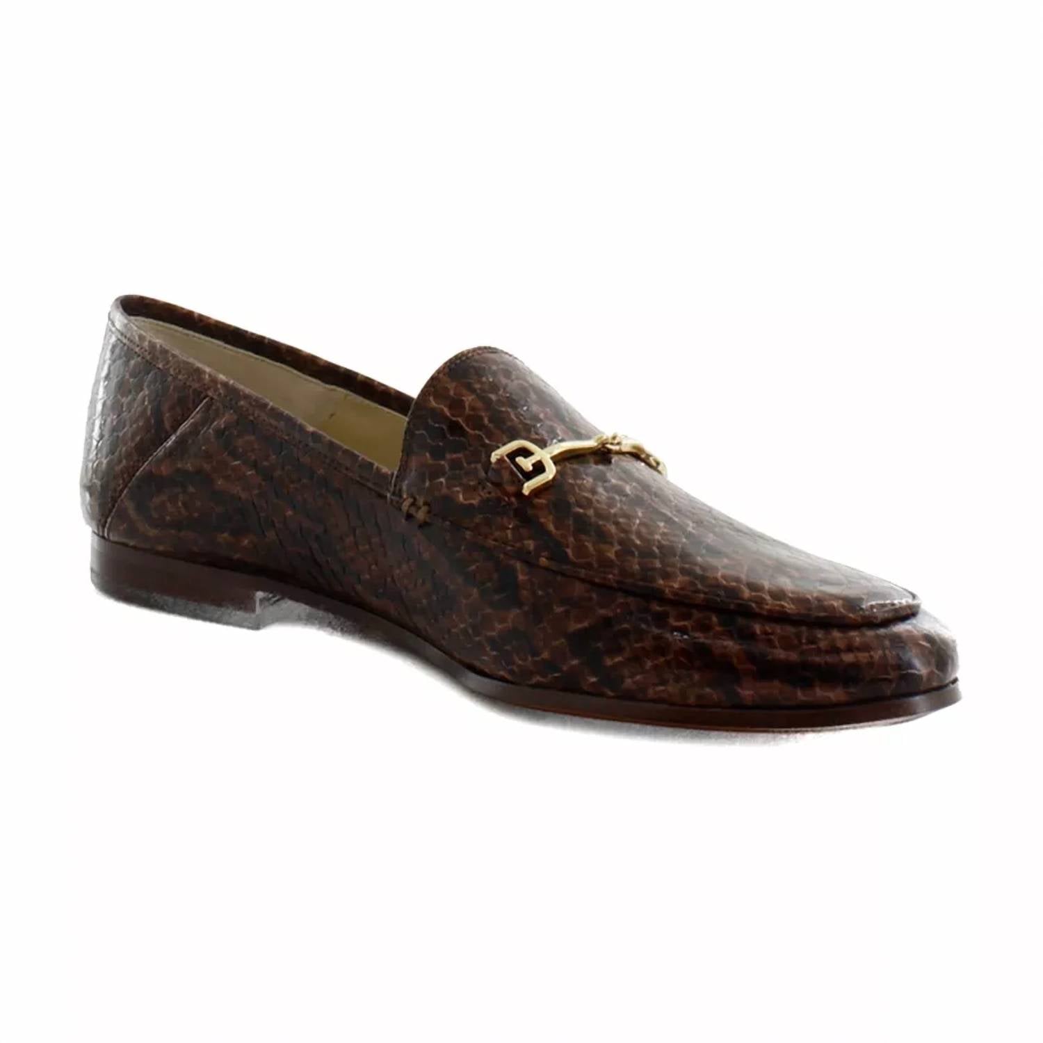 Uma versão elegante e feminina do clássico mocassim. Apresentamos os Mocassins Femininos Loraine com Estampa de Cobra da Sam Edelman, uma adição elegante a qualquer coleção de calçados. Confeccionados em couro marrom luxuoso com estampa de cobra, estes mocassins rasos exalam elegância e estilo. Projetados para a mulher adulta moderna, estes mocassins oferecem sofisticação e conforto. Perfeitos para adicionar um toque de inspiração animal a qualquer look.