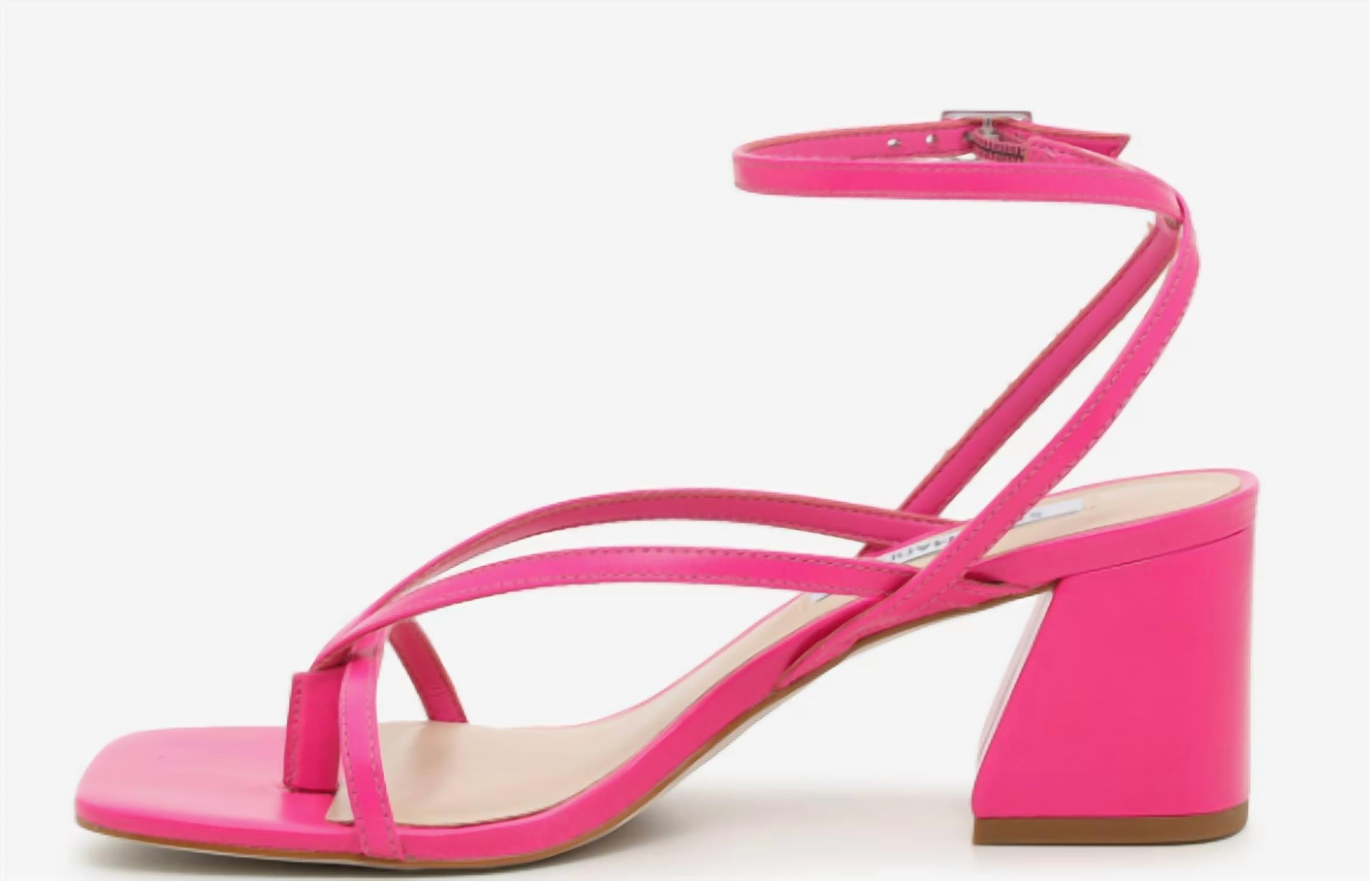 A altura perfeita para o dia e a noite. O salto Alaina é preso com uma tira de couro e um design de tira no tornozelo, finalizado com um bico quadrado e um salto baixo em bloco. Sandália de salto em bloco com fecho de fivela na tira cruzada no tornozelo. Tira nos dedos sobre as tiras frontais da tira. Salto em bloco angular. Bico quadrado. Altura do salto de 2,75 polegadas. Material do cabedal em couro. Forro sintético. Sola sintética.