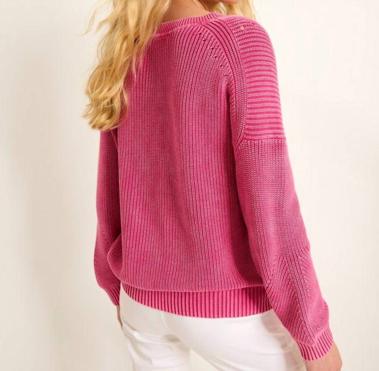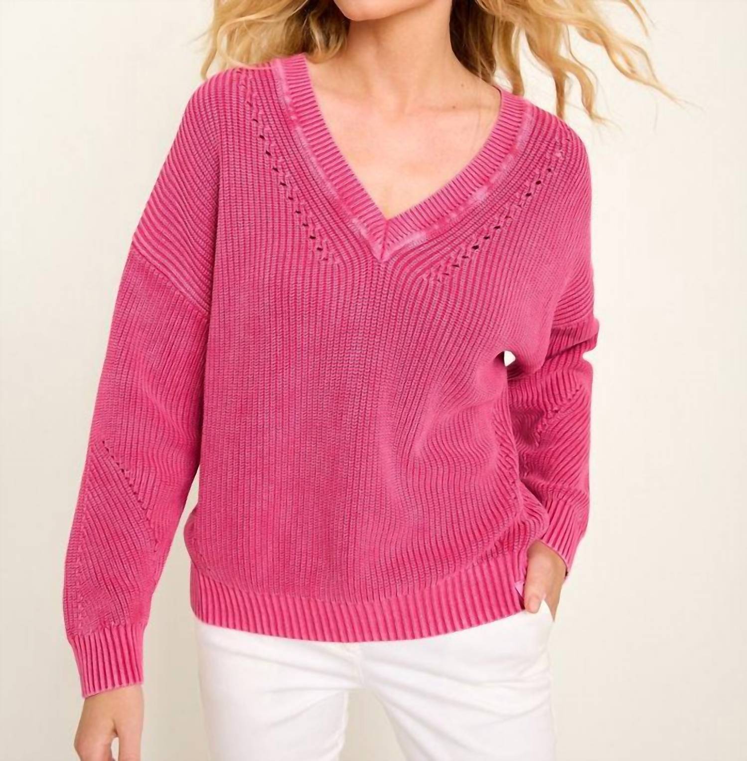 Eleve seu guarda-roupa com o suéter de tricô com decote em V da TOMMY BAHAMA, um item essencial para uma elegância descontraída. Este suéter de manga comprida é confeccionado em 100% algodão penteado, garantindo conforto e estilo em um tom magenta salt wash. Com estampa texturizada e fecho pull-on, mede 58 cm do ombro à bainha no tamanho P. Desfrute de um cuidado sem esforço com as instruções de lavagem à máquina; basta secar na horizontal após a lavagem.