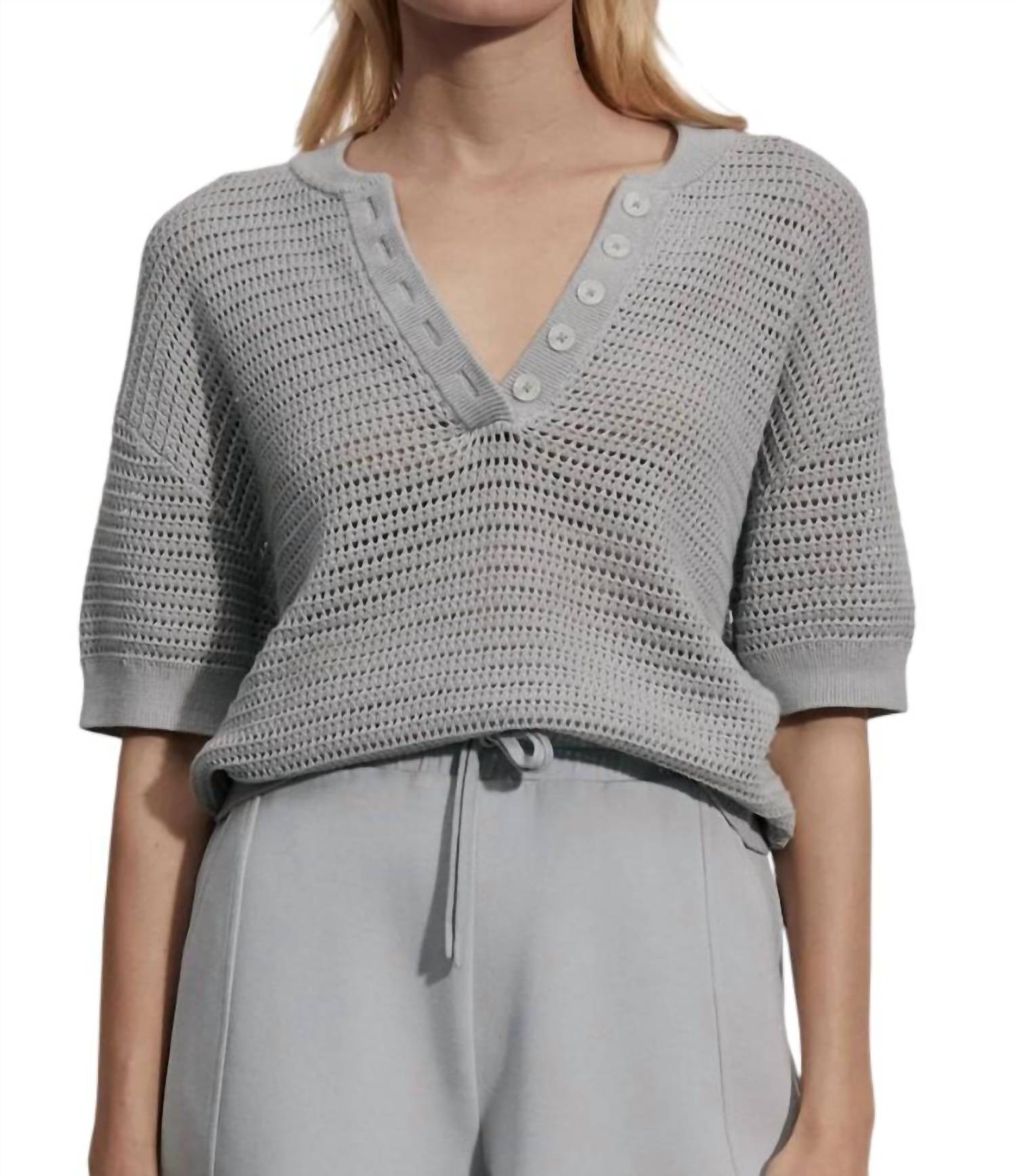 Não procure mais, você acabou de encontrar a camiseta perfeita! Camisa sem gola e abotoada. Design de malha aberta. Mangas curtas. Caimento solto. 100% algodão.
