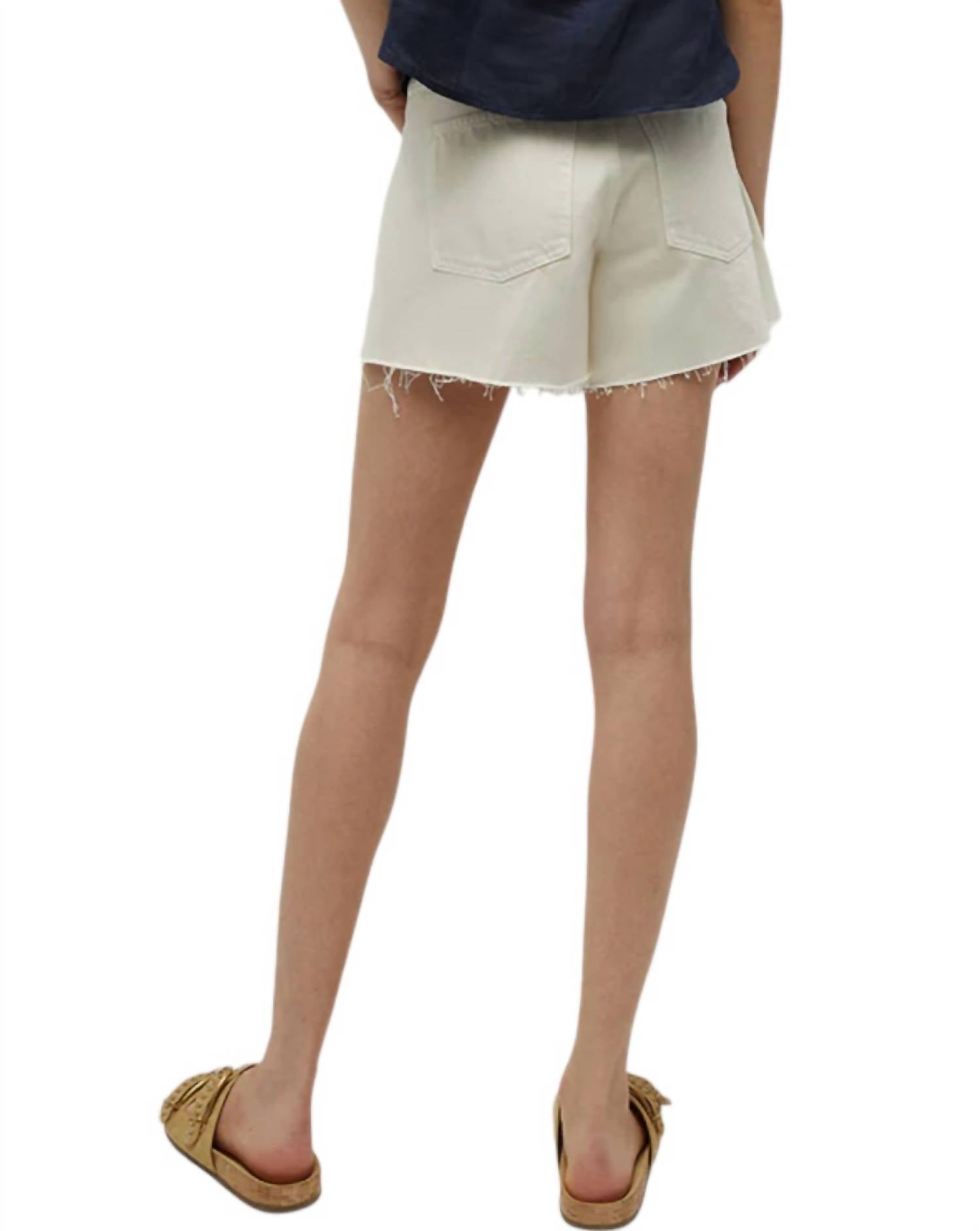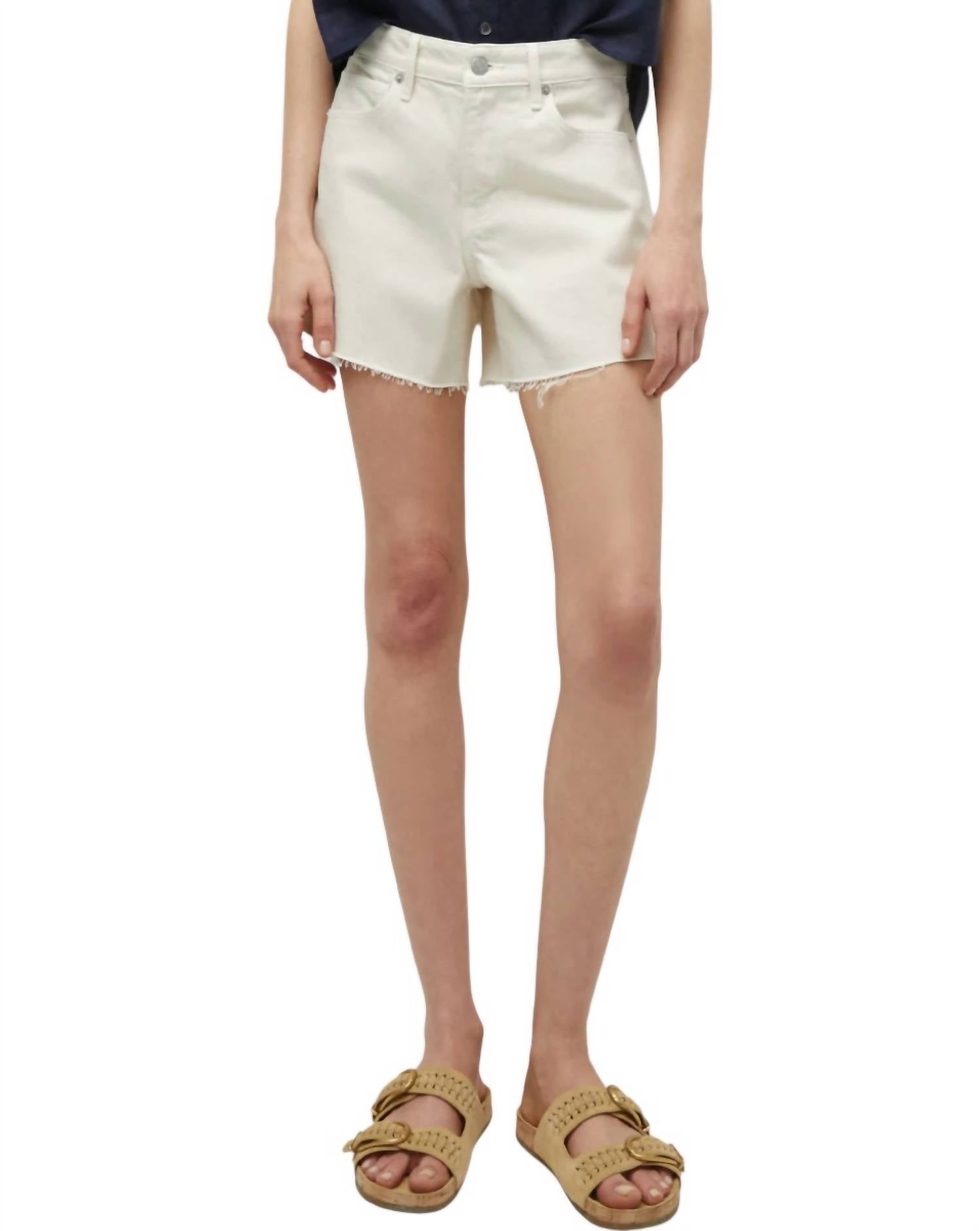 A cintura alta veio para ficar e nós amamos especialmente este modelo curto. Descubra um estilo versátil. Desenhado com cintura alta e comprimento médio. Apresenta uma composição confortável 100% algodão. As características incluem fecho de botão e um layout clássico de cinco bolsos. Completo com bainha crua para um toque moderno. Gancho de 28 cm, costura interna de 13 cm e abertura de perna de 62 cm. Elegância sem esforço encontra praticidade. Lavagem à máquina com água fria para facilitar o cuidado.