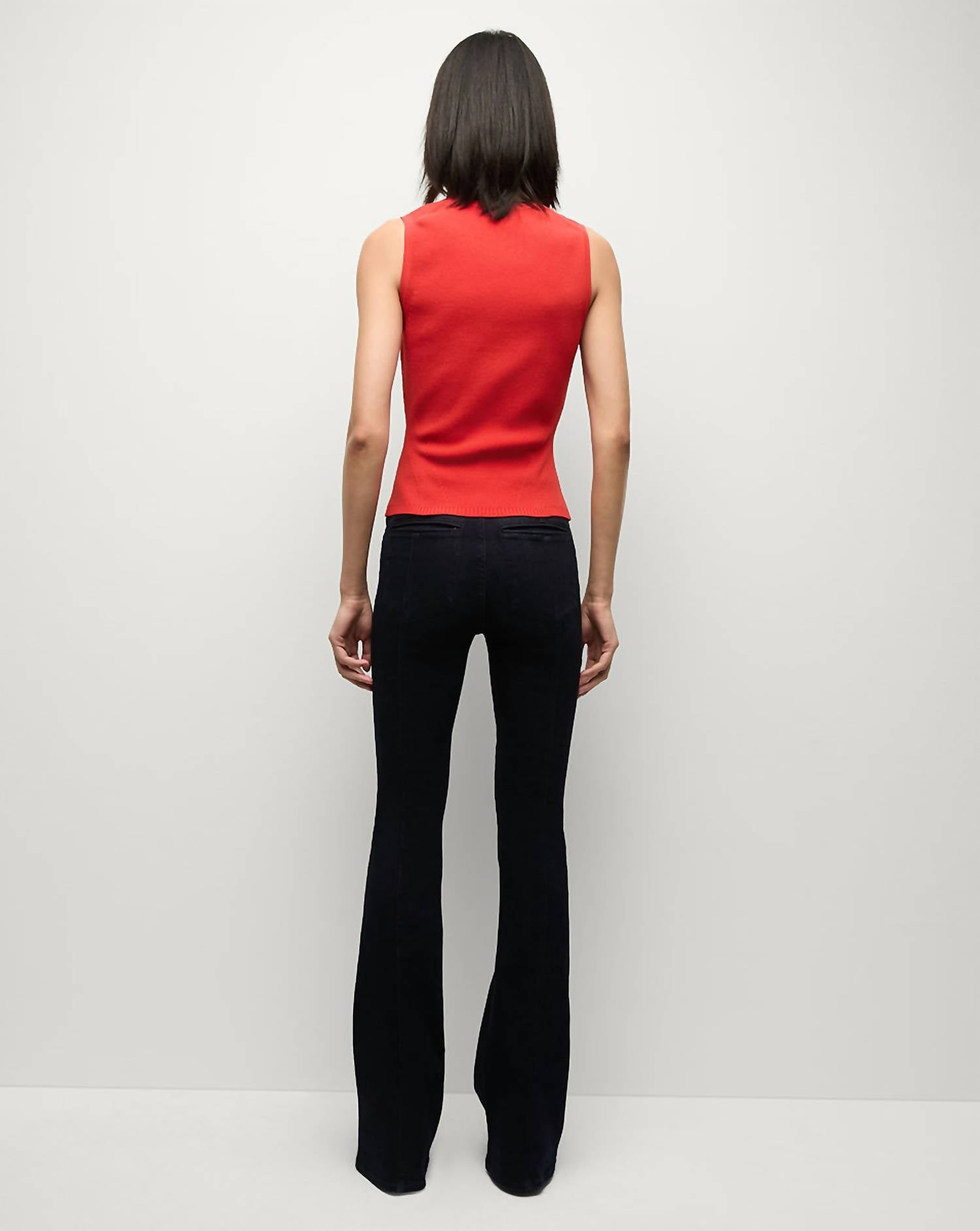 Conheça a Regata de Malha Sid com Gola Redonda da Veronica Beard, uma peça essencial vibrante em tom papoula que adiciona um toque de cor a qualquer guarda-roupa. Esta peça sem mangas é confeccionada em uma mistura de viscose elástica com um design texturizado canelado em toda a peça, perfeita para usar em camadas ou sozinha. Composição: 51% Viscose, 34% Nylon, 12% Poliéster, 3% Elastano. Fecho: Sem cadarço. Cuidados: Somente lavagem a seco.