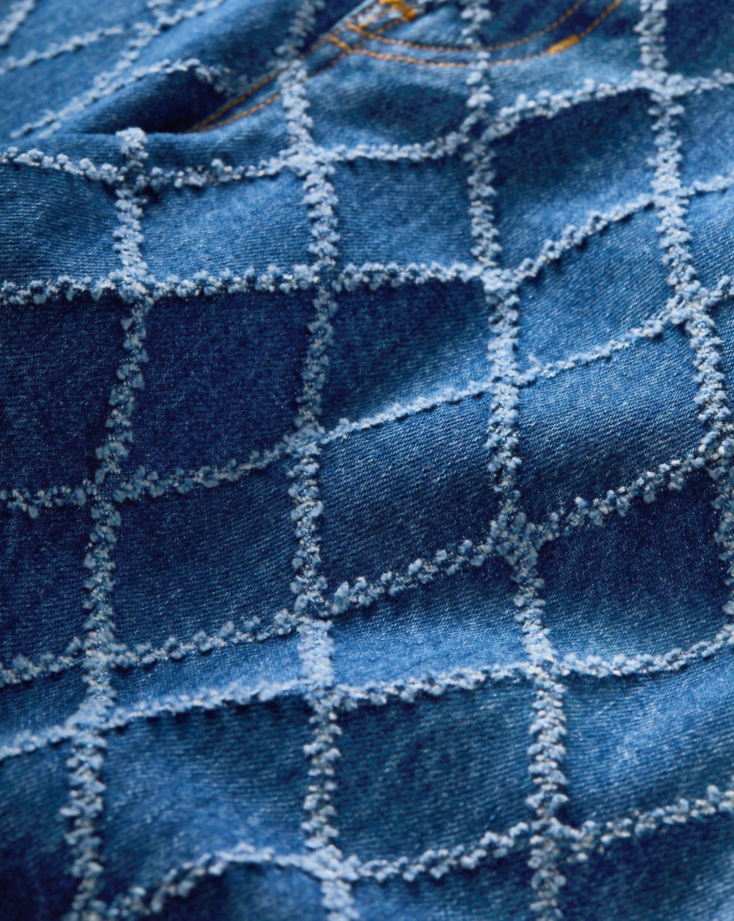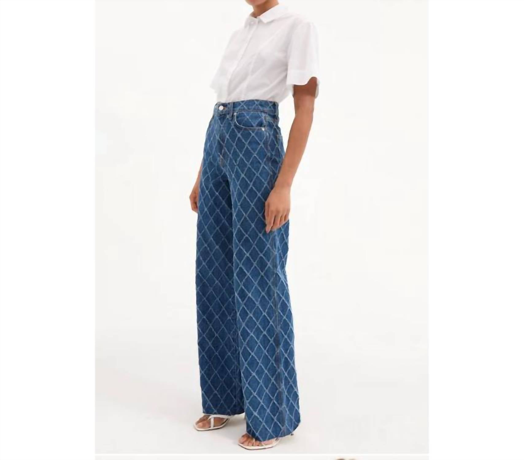 Combine esta calça jeans de perna larga com mules, slides ou suas sandálias de tiras favoritas. Apresentamos a Calça Jeans Taylor High Rise Wide Leg da Veronica Beard, confeccionada com um impressionante padrão Blue Diamond. Esta calça jeans apresenta cintura alta e caimento relaxado, com uma silhueta de perna larga que se estende elegantemente até a bainha sem acabamento. Confeccionada em jeans italiano premium 100% algodão nos EUA, oferece um fecho clássico de botão. Instruções de cuidado: Vire do avesso e lave na máquina com água fria, secando no varal. Altura do cós: 30 cm, Perna interna: 81 cm, Abertura da perna: 55 cm (baseado no tamanho 26).