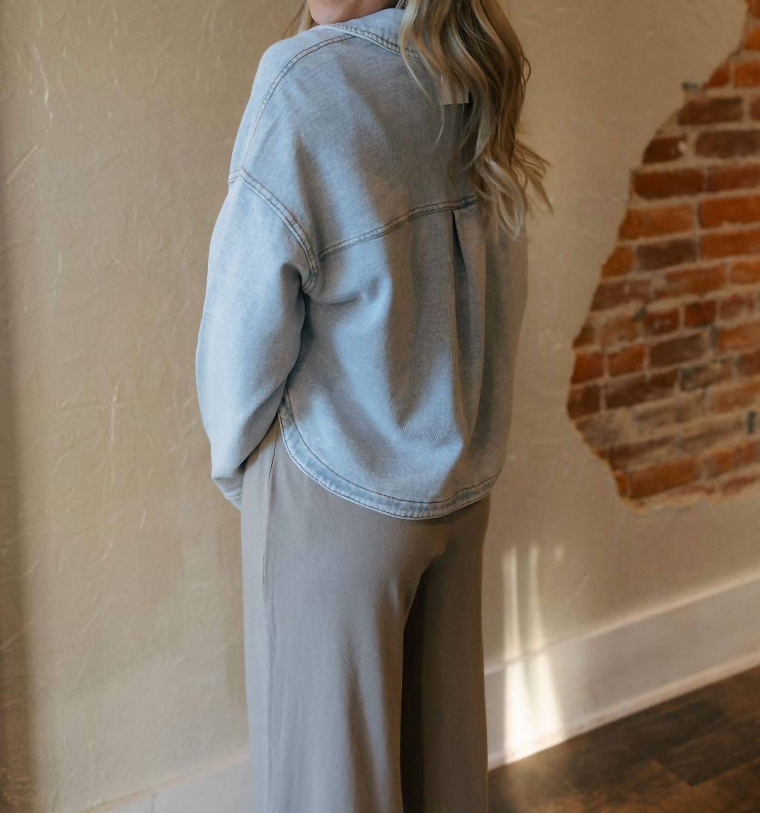 A jaqueta jeans perfeita para aqueles dias um pouco mais frios entre as estações. Apresentamos a Jaqueta Cropped de Malha All Day da Z Supply, uma peça estilosa e confortável em Washed Indigo. Com mangas longas e confeccionada em uma mistura exclusiva de Knit Denim French Terry com 85% algodão e 15% poliéster, esta jaqueta apresenta um comprimento cropped elegante e um design clássico de gola. O fecho de botão e o bolso aplicado adicionam praticidade à sua estrutura descontraída e de peso médio. Cuidar desta belezinha texturizada é simples: lave na máquina com água fria e siga as instruções de lavagem delicada, finalizando com a secagem no varal.